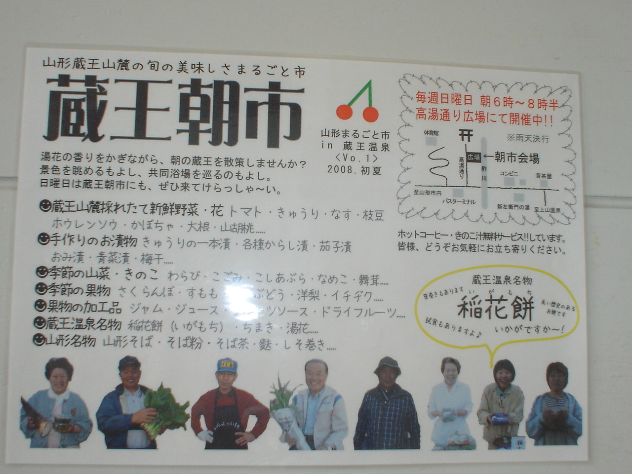 fdb8c303.jpgル・ベール蔵王玄関前18度今年1番の暖かさです。蔵王ロープウエー山麓駅に上山の農家がさくらんぼ直売店をオープンしました。7月末迄開店していると農家の方が言っていました。本日高山植物開花情報3号がA3版で配布されましたのでそのまま玄関前に掲示しました。山麓駅の皆様拡大でいただき有難うございました。3号から熊野岳が記載され「こまくさ」が咲き始2種も記載されていました。三宝荒神山・地蔵山ではイワカガミ・ミネズオウ・ヒナザクラが咲き始めとして記載されています。いろは沼ではワタスゲが見頃と写真も掲載されています。お釜とコマクサの写真掲載されていますが場所は蔵王ロープウエースタッフにお聞き下さい。写真は樹氷高原駅寒暖計17.3度と左上に高山植物開花情報が掲示されています。写っている人物は樹氷高原駅助役さんです。山麓線のゴンドラの中にも掲示されています。高山植物が見頃です週末には涼しい蔵王へお出で下さい。