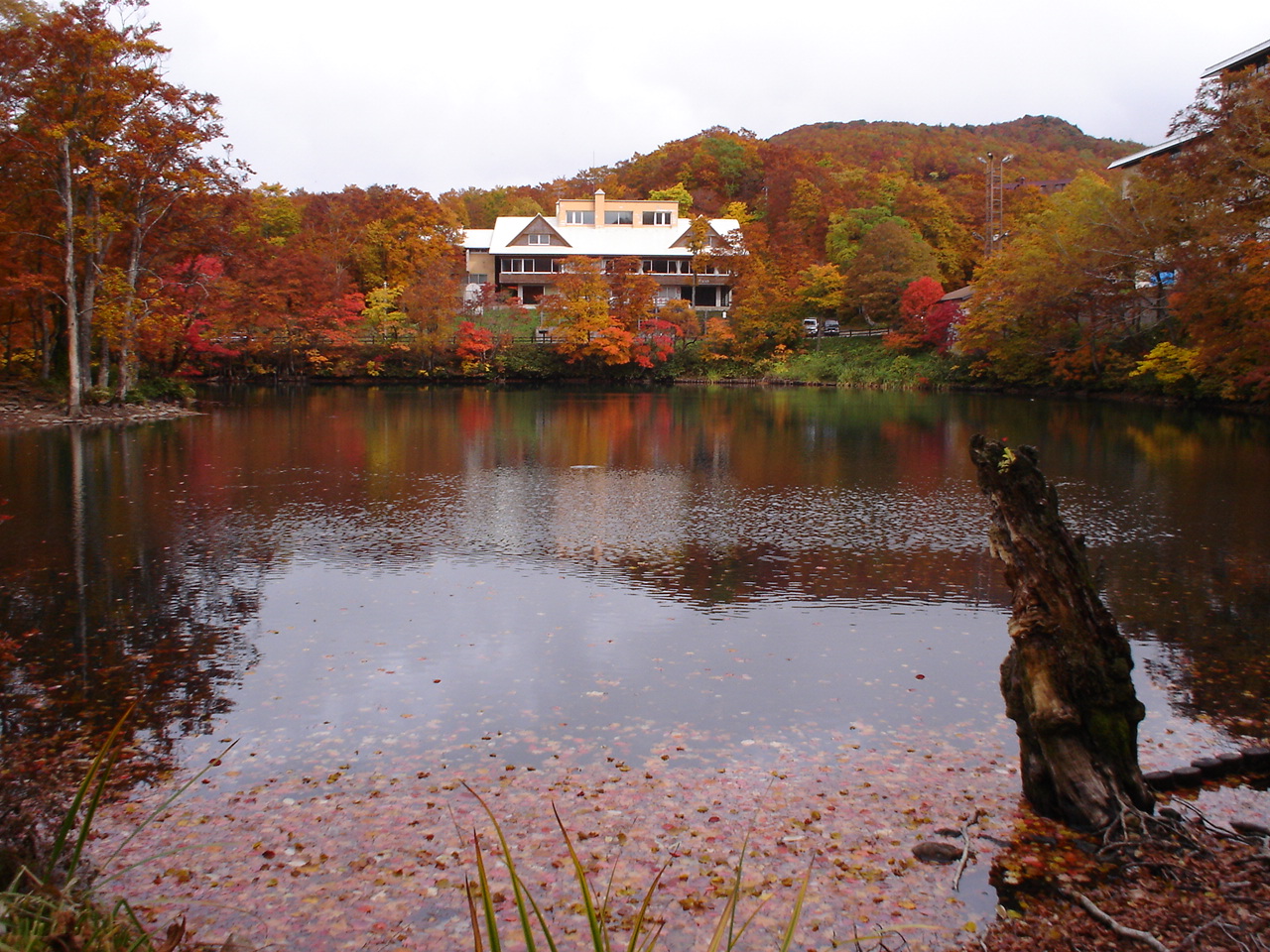 14bae7ca.JPGル・ベール蔵王玄関前11度曇、蔵王スカイケーブルでドッコ沼に行きました。上駅までの両側黄葉が綺麗で少し紅葉もありコントラストが見事でした。マイカーで林道を登ってきている人が多かった。写真は10月末で閉められるロッヂドッコ〔昭和31年暮より蔵王河童がスキーで泊まり日本初オーストリースキースクールを開催した旧ぶな小屋です。スクールの蔵王河童講師をさせていただきました。〕紅葉とドッコ沼に写った建物もご覧下さい。13時30分より秋季総合防災訓練が行われた。山形市消防団第六分団第五部蔵王温泉精鋭13名の行進・放水等規律あるキビキビした行動で立派でした。