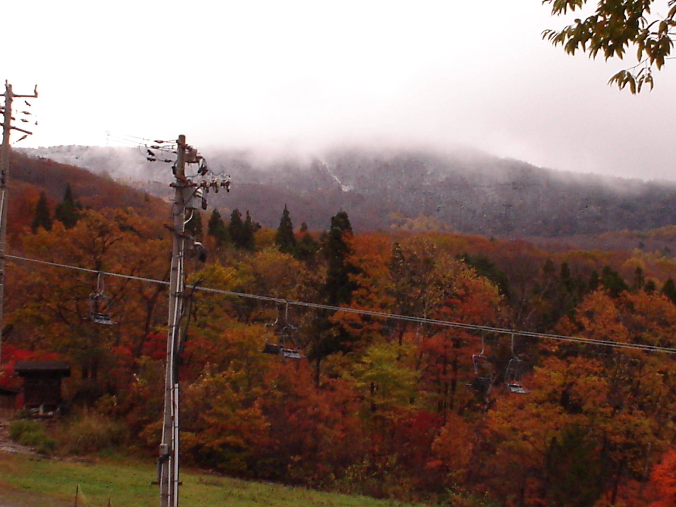 f431d6d1.JPGル・ベール蔵王玄関前7度曇、鳥兜山・横倉山は雲の中で見えません。蔵王中央ロープウエーウェイトを吊下げ定員減で運行しています。寒波が来ていますので蔵王エコーライン凍結によるスリップに注意が必要です。出来れば朝10時から午後2時位までに標高1.500m以上を通ってください。ここ数日蔵王お釜は濃霧の為ご覧になれませんでした。今日も残念ですが見れないようです。名物蔵王温泉大露天風呂オープンは11月24日連休までですが昨年は19日に大雪が降りクローズしました。当館隣の上がり湯完備している源七露天の湯は通年営業しています。今時珍しい牛乳瓶入りの牛乳が飲めます。当館では、ご宿泊者割引券450円⇒350円をフロントで販売いたしております。写真は中森ゲレンデ中森第一ペアリフト第5鉄塔上右の祓川登山道入口です。〔ル・ベール蔵王と同じ標高900mです。当館より徒歩約70m〕秋の登山は11月3日迄が最適です。それ以降は冬支度で登山して下さい。まだ1.000m以下は紅葉が残っています。1.400mからの落葉したぶな林の落ち葉の上の歩行は森林浴と軽運動に良いようです。