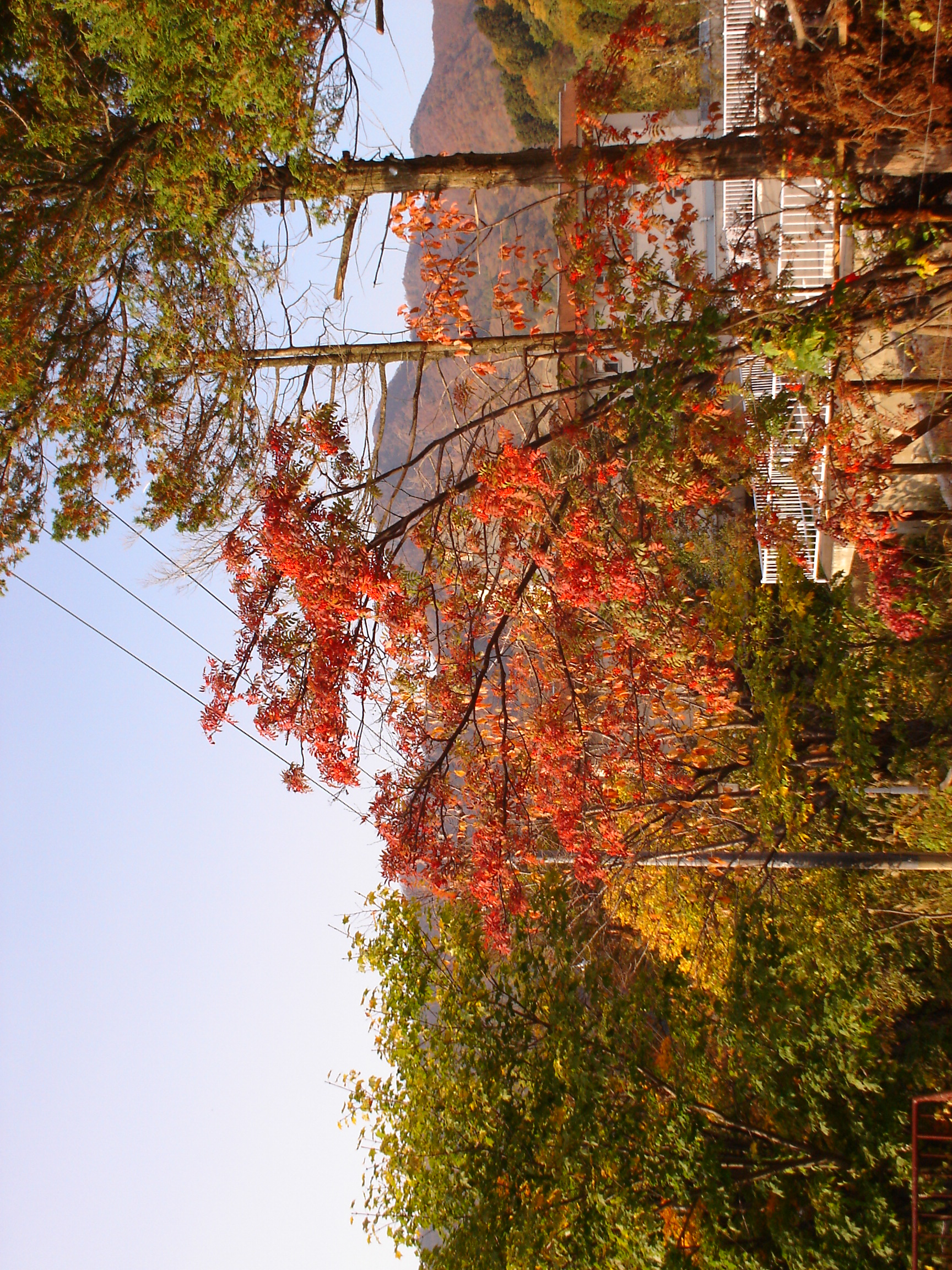 2c0574a6.JPGル・ベール蔵王玄関前12度曇、強風、表蔵王口からの蔵王公園線定期バス両側の田圃稲狩りが終わり籾殻を焼き田圃に黒く撒いているのがご覧になれます。一部籾殻を山にし焼いて白い煙が出ている風景も見られます。蔵王温泉街迄紅葉が降りてきました。強風で落ち葉が乱舞しています。写真は祓川登山道の紅葉です。こんなに美しいのは珍しくお客様へお出しする葉書に使用する事にしました。紅葉狩りのお客様が沢山お出でになっています。10月26日が今年の朝市最後になる予定です。もって菊・ラフランス・漬物等生産者直結の生きの良い農産物を朝7時前にお出でになって下さい。地元の皆さんも早朝から買いにお出でになると思われますので6時開店と同時に売切れになるものも例年あります。