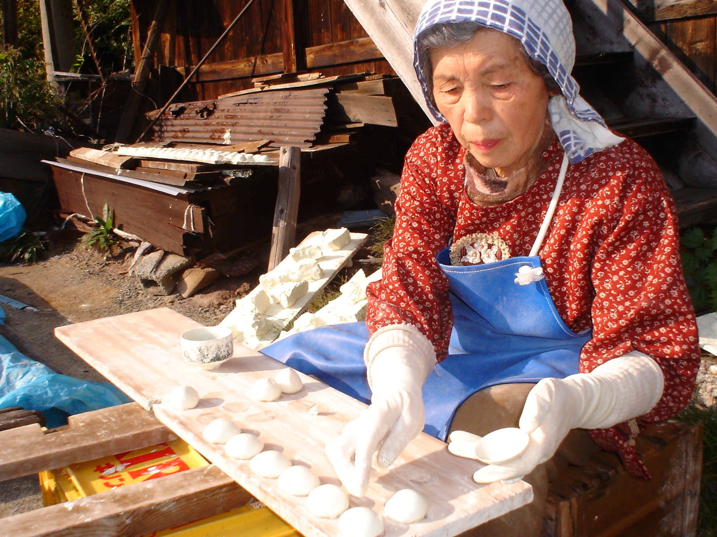 61c62bad.JPGル・ベール蔵王玄関前9度晴、紅葉1,000m迄降りてきました。今週蔵王温泉旅館組合こまくさ会(女将の会)の皆さんが会が始まって以来初の山形市内にキャンペーンに行きました。ま「蔵王温泉での〜んびり温泉三昧」のパンフレットを作成し持参しました。遠くの温泉もいいけどガソリン高騰が・・・やはり近場の温泉でゆっくり・のんびり生きましょう〜!宿泊コース(お1人様ビール1本付)と日帰りコースとプラン実施施設名が記載されています。ル・ベール蔵王他30施設です。問合せ先は蔵王温泉観光協会になっています。写真は、柳屋のばばさまが蛇洗川源泉と湯佐の沢源泉湯管より収集した湯花を加工している所です。左手のお猪口で前に置いてある湯花を丸い湯花玉に成型し天日で乾燥させ販売します。能登屋・最上屋・まるしち・千歳屋・松島屋・利久・こだま荘・まつぽっくりも同じ湯花採り組合員です。10個525円で各店で販売しています。