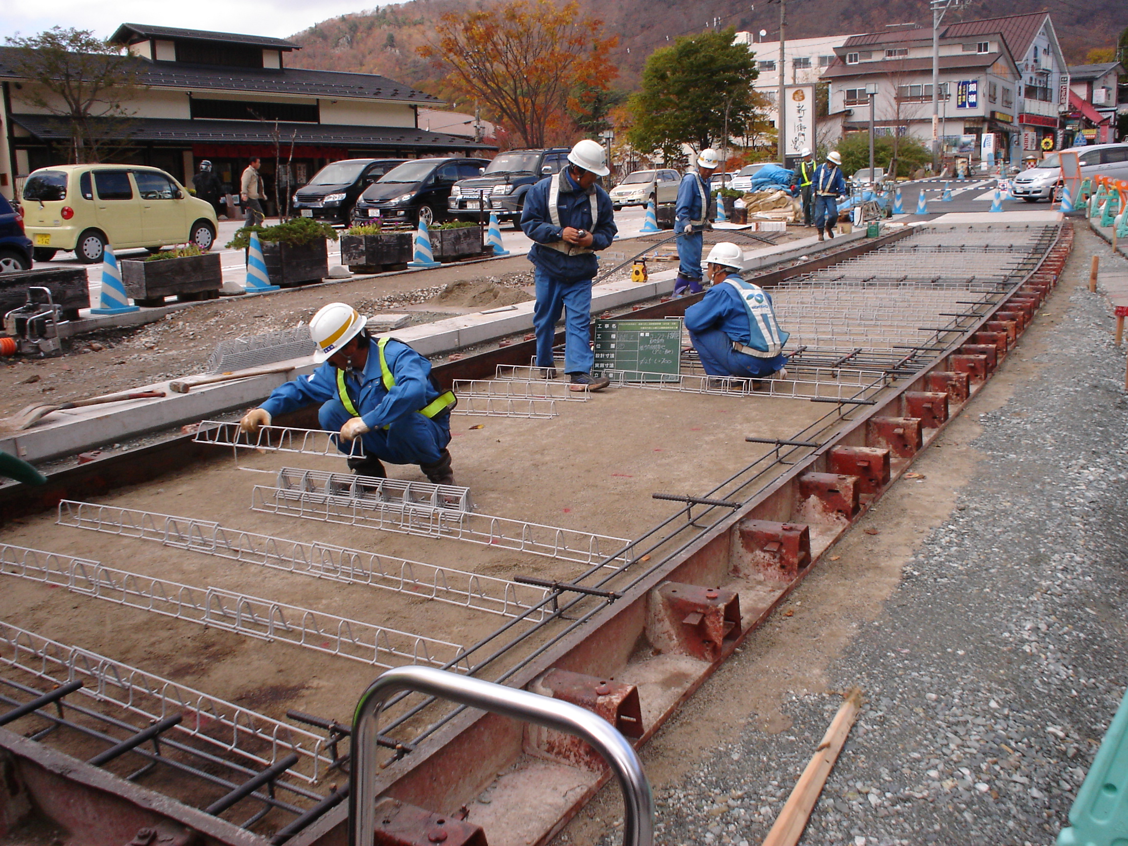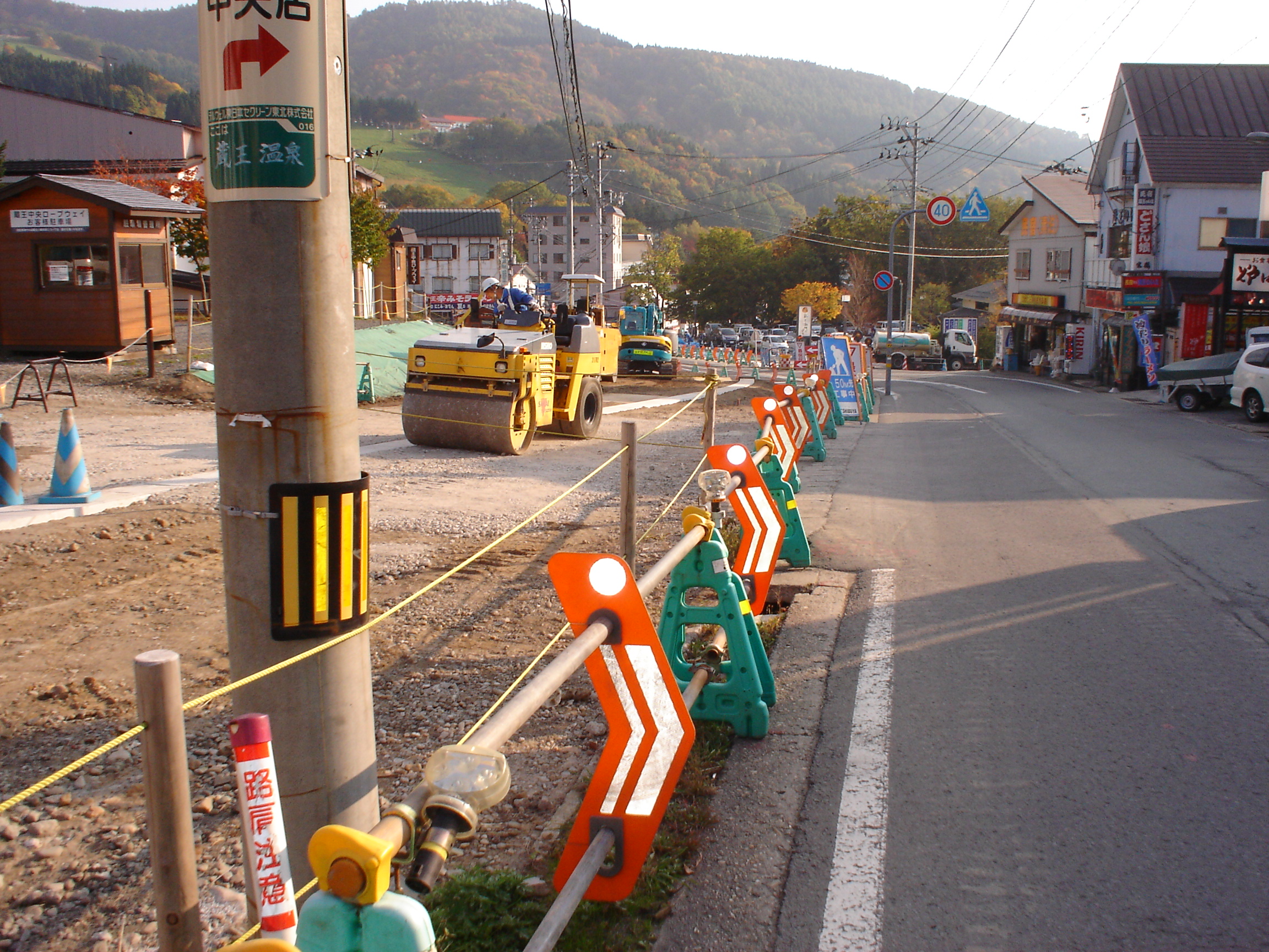 d322ce2c.JPGル・べール蔵王玄関前7度晴、風があり寒く防寒具が必要です。蔵王温泉街の桜が紅くなりました。樹氷通り二度川から蔵王中央ロープウエー第二駐車場まで道路拡張工事進み幅を倍にする工事が始まりました。新左衛門露天の湯前の新設される道路融雪のためパイプ組が終わり路面工事が始まります。写真はファミリーマートから銀嶺本店方面左側蔵王中央ロープウエー第二駐車場側の拡張部分です。今年のスキーシーズン迄には拡張した道路になりそうです。