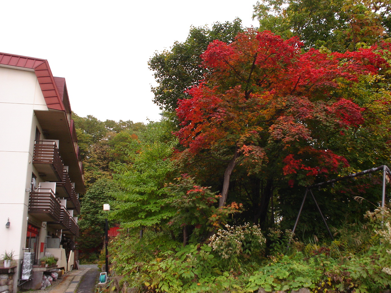 b68c4ade.JPGル・ベール蔵王玄関前8度秋晴、今日17時より蔵王エコーライン朝8時迄夜間通行止めになりました。現在のところ11月3日17時より来年4月下旬迄冬季閉鎖になる予定ですが蔵王温泉観光協会では昨年同様11月中旬迄通行出来るよう運動中です。標高1.400m以上は夜間冬になってきたと考え対処する必要があります。写真は紅葉が始まったル・ベール蔵王玄関前です。今週末にはもっと紅く綺麗になると思われます。祓川登山道のぶな林黄葉が素晴らしく所々の紅葉が更に美しくしています。蔵王ロープウエー山麓線に乗車しユートピア夏山リフトから中央への連絡コースから祓川登山道に行くトレッキングが紅葉・黄葉見頃です。足首が固定出来る登山靴を履いてお出でになって下さい。登山道がちゃがちゃといっていいほど荒れているところがあります。