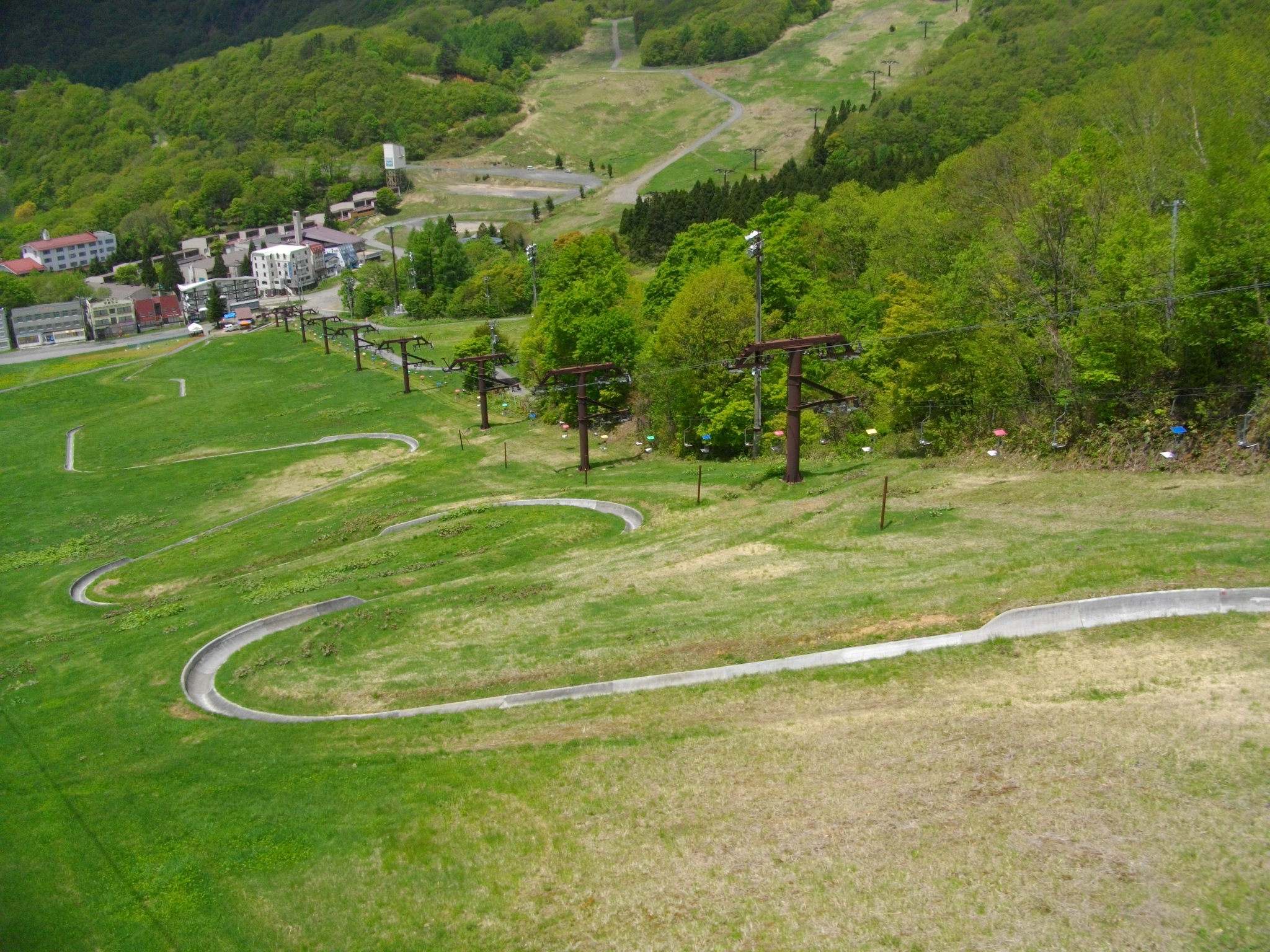 04c0f9c3.JPGル・ベール蔵王玄関前・朝7時・10度・晴・弱風。蝦夷春ゼミが鳴いています。写真は6月毎週土日営業する上ノ台のスーパースライダーです。蔵王温泉第三リフトに乗り滑り降ります。大人520円⇒420円・子供370円⇒270円特別優待割引チケットフロントにございます。上ノ台ゲレンデ酢川温泉神社上の山形市水道部水源貯水槽砂の補充工事をしています。(蔵王温泉街供給の水源です。)蔵王体育館前のこだま荘さん湯花作り実演でおらえのとっておき祭参画していますが今日天気が良いので庭に湯花かたまりと湯花を天日干ししていました。杯湖手前の伊勢屋さん自宅玄関の八重桜満開です手前のツツジも満開で見頃です。高湯通り商店定休日でほとんどクローズしていました。2010蔵王温泉春のおらえのとっておき祭参画展示施設と内容FAX入りました、39施設記載されていますがまつぽっくりギャラリーに展示されている蔵王のポスター記載されていません。40番目に記載し再送しては??