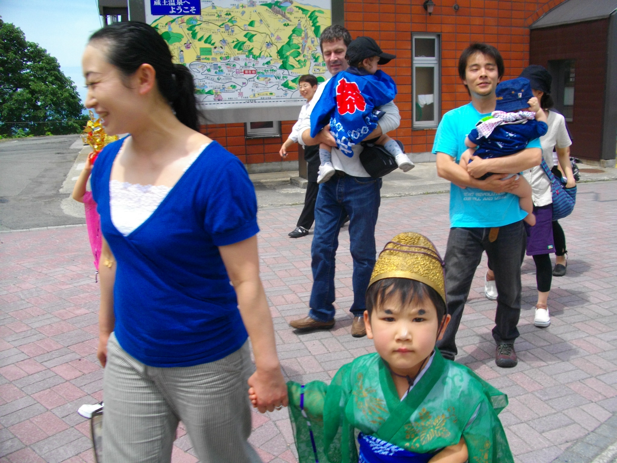 05ceb040.jpgル・ベール蔵王玄関前・朝7時・18度・晴。春の酢川温泉神社例大祭盛大に行われました。10時30分蔵王バスターミナル出発200名を超える稚児さんも加わり蔵王中小生の雅楽演奏で高湯通りから神社階段・本殿まで行列で湯殿山神社宮司をお迎えし地元岡崎宮司・蔵王在住の多田湯殿山権宮司他でした。写真は蔵王温泉子供会による稚児行列です。記念パネル製作依頼されました。東京からお祭に来た孫を見に叔母として東京から日帰りで来ましたのでパネル製作を依頼しました。青年部の焼き鳥・焼き蕎麦・フランクフルト・射的・ヨーヨー釣り・冷たい飲み物販売も好評でした。蔵王温泉系こけし販売こけし神社で例年通り実施されこけし好きの方々が早朝から並んで購入していました。