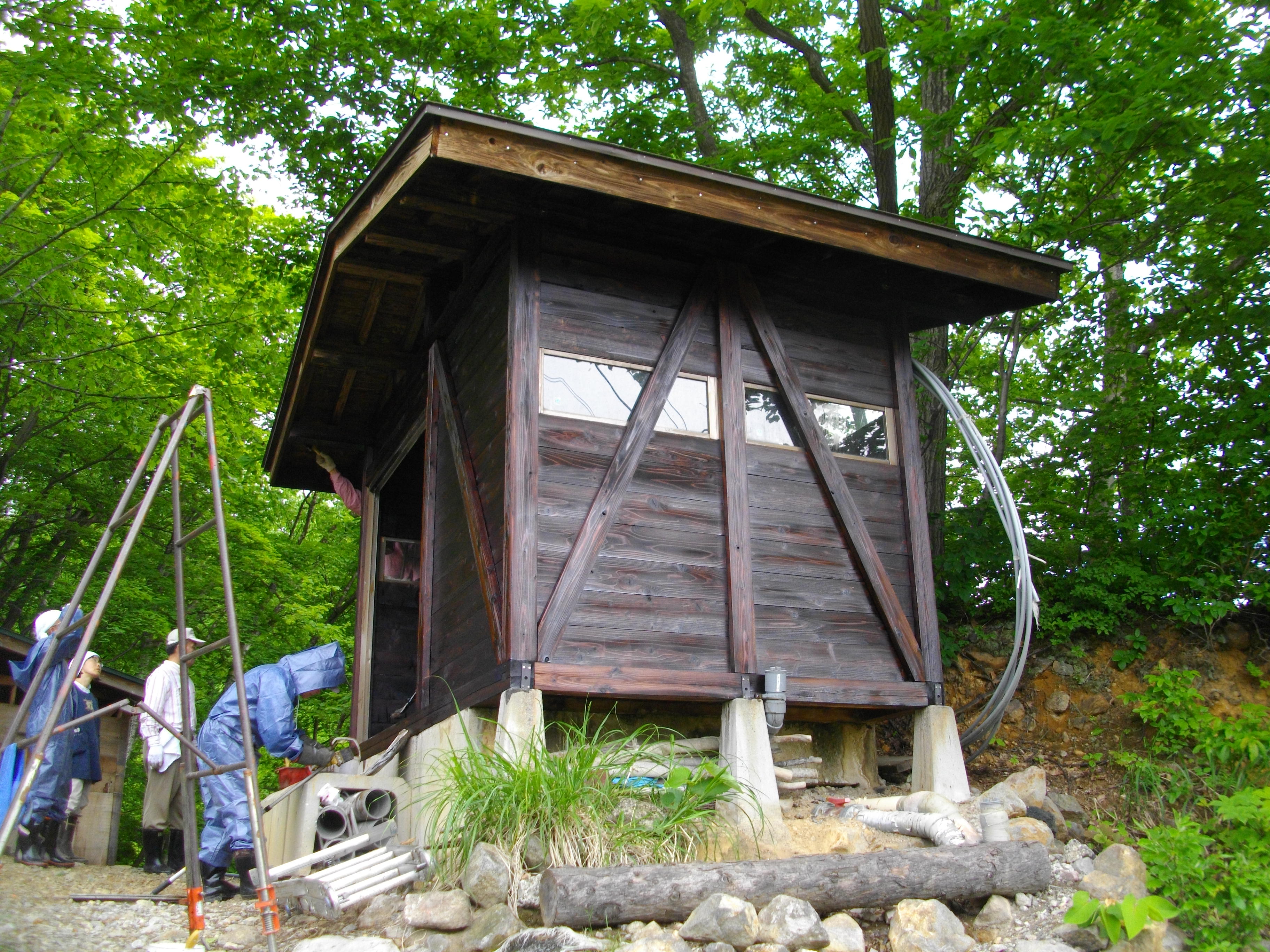 4e1b142f.JPGル・ベール蔵王玄関前・朝7時・15度・曇・無風。蔵王中央ロープウェイウエイト吊下げ定員減で運行。蔵王ロープウェイ株式会社第49回株主総会が横倉の蔵王アストリアホテルで開催された。根津代表取締役会長(東武鉄道株式会社社長)も総会に出席した。営業成績も良く蔵王温泉スキー場リーディングカンパニーとして大活躍です。龍山登山道国有地境界線点検に山形森林管理所職員が来て境界杭の周りの草刈と赤いペンキを塗っていました。マイズルソウが満開で群生していました。二度川源泉温泉分湯棟の防腐処理と湯管補修を全員参加で行っていた。写真は中森ゲレンデ祓川登山道入口手前の温泉分湯棟です。此処から分湯されているル・ベール蔵王の温泉浴槽湯花が流れ込み白濁し浴槽底が見えません。木曜日までお湯を変えませんので白濁温泉に入りたい方は今日から明日までにお出で下さい。