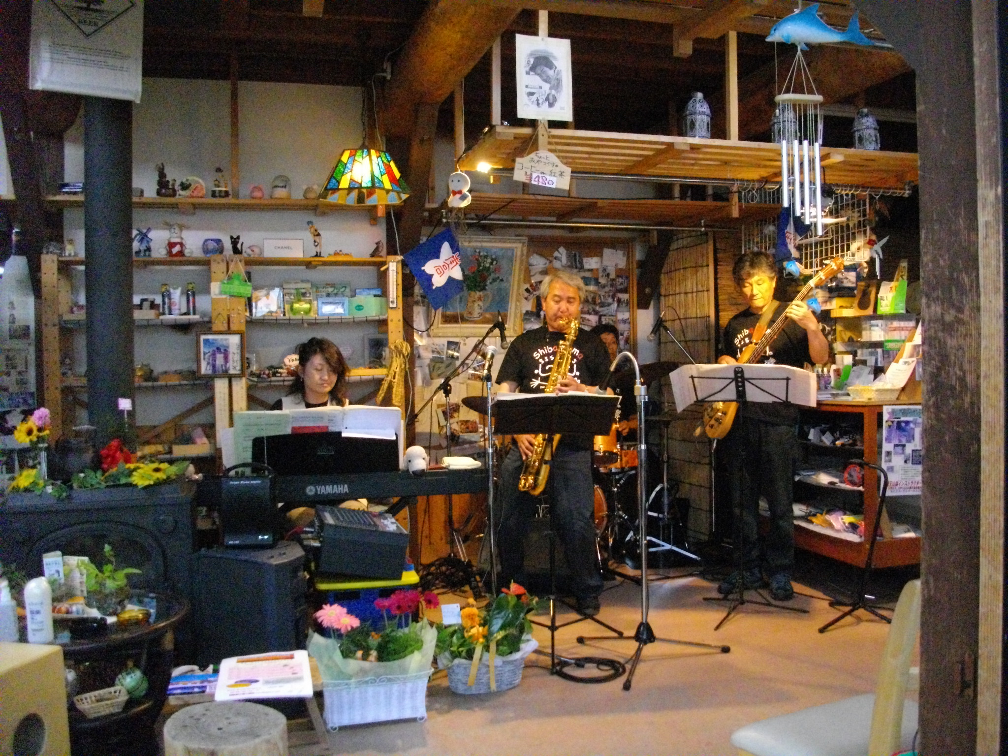 シバママライブ19日18時より雨模様の為お店の中を舞台にして演奏しました。