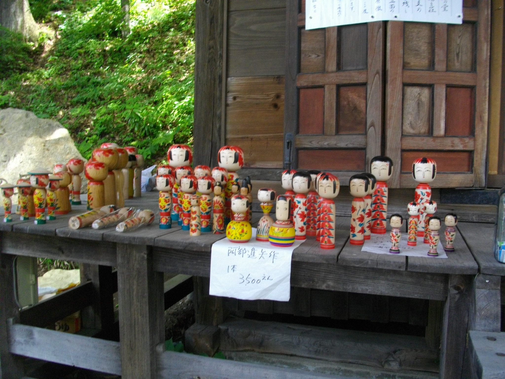 a1c7d05f.jpgル・ベール蔵王玄関前・朝7時・19度・雨・標高1,000m以上雲の中。朝雨の中ご宿泊のお客様高湯通りで毎週日曜日朝6時から8時までの朝市にお出でになりました。山形地方大雨注意報が出て朝ご出発のお客様お釜を断念しスケジュール変更なさっていました。トレッキングに虫対策が必要なシーズンになりました。蔵王河童は網を頭にかぶります。腰に虫除けの機械をぶら下げる方もおいでです。写真は昨日開催された酢川温泉神社右側にあるこけし神社に並べ販売していたこけしです。一年に一回の行事です。購入額により籤引きがあり購入額の倍以上の尺物の大型こけしをゲットなさり大喜びの方もおいでです。