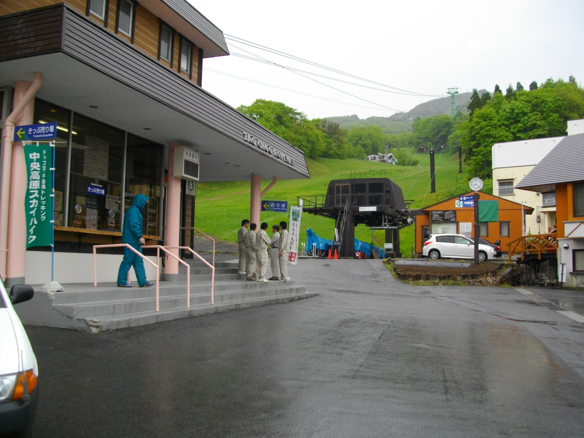 c132d700.JPGル・ベール蔵王玄関前・朝7時・11度・雨・無風。濃霧・蔵王中央ロープウェイウエイト吊下げて運行、蔵王ロープウェイ地蔵山頂駅・4度・濃霧。今日の第36回蔵王クリーン作戦・及び蔵王温泉クリーン作戦雨のため中止になりました。写真は早朝から中止の為温泉駅に来た山形市役所職員の皆さんです。蔵王温泉クリーン作戦実施の放送がYBCラジオと蔵王温泉防災放送でありましたが8時30分に雨が強くなり中止が防災放送で再放送されました。年中無休で営業していたばくろう鍋で好評の「山の茶屋」さんが店を閉めました。料理旅館として高湯通りで名物の旅館「高砂屋」さんの食堂部門も休業になり宿泊専業になりました。一昨日昼食しようとして行きましたが暖簾が無くなりご近所でたずねたところ教えてもらいました。明日6日10時〜14時高湯通りで女将のおらえのとっておき祭イベント・湯花作り・湯めぐりこけし絵付コンテスト・川柳投句・おかみ市場・蔵王名物からから汁ふるまい・子供達の本場尾花沢の花笠踊り等が行われます。ご家族で明日は蔵王温泉にお出で下さい。お帰りにミネザクラのお花見と高山植物観賞でお楽しみ下さい。
