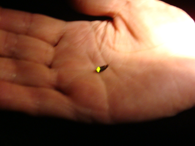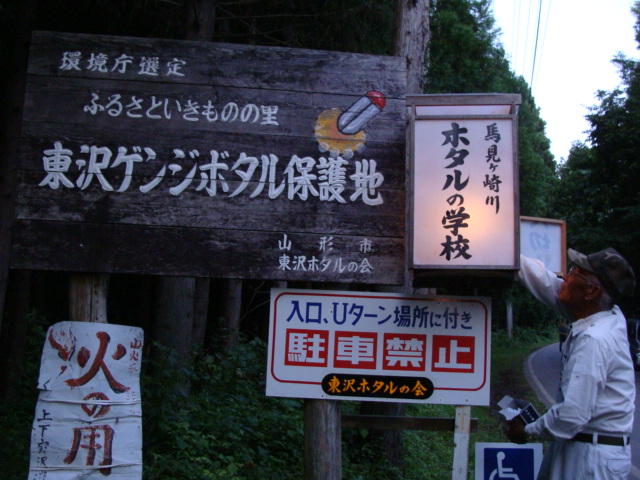 abd28ffb.jpgル・ベール蔵王玄関前・朝7時・20度・涼しい風が吹いています。太陽がギラギラふりそそぎ夏ゼミがうるさく鳴いています。一昨日・昨日と蛍狩りに行ってきました。蔵王の麓標高550mの小倉街道沿いに一昨日、昨日は蔵王ダムの麓・蛍の学校東沢地区に行ってきました、沢山の見学者が駐車場の無い道端にマイカーを停めて来ていました。水辺で蛍が飛んでいました。地区の世話役の話では数日前蛍が湧き出る様に出てきたと教えてくれました。写真は蔵王小倉の蛍です。道路に飛んできた蛍を手にのせました。