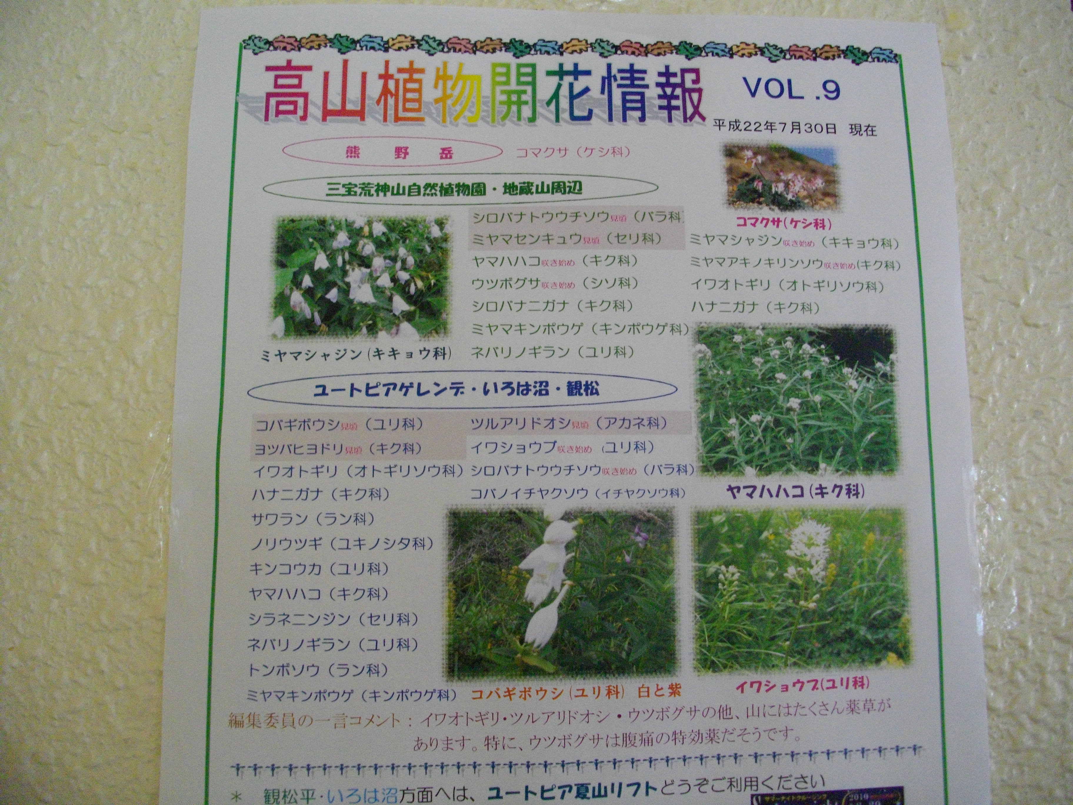 高山植物開花情報VOL7号7月16日発行が届きました。