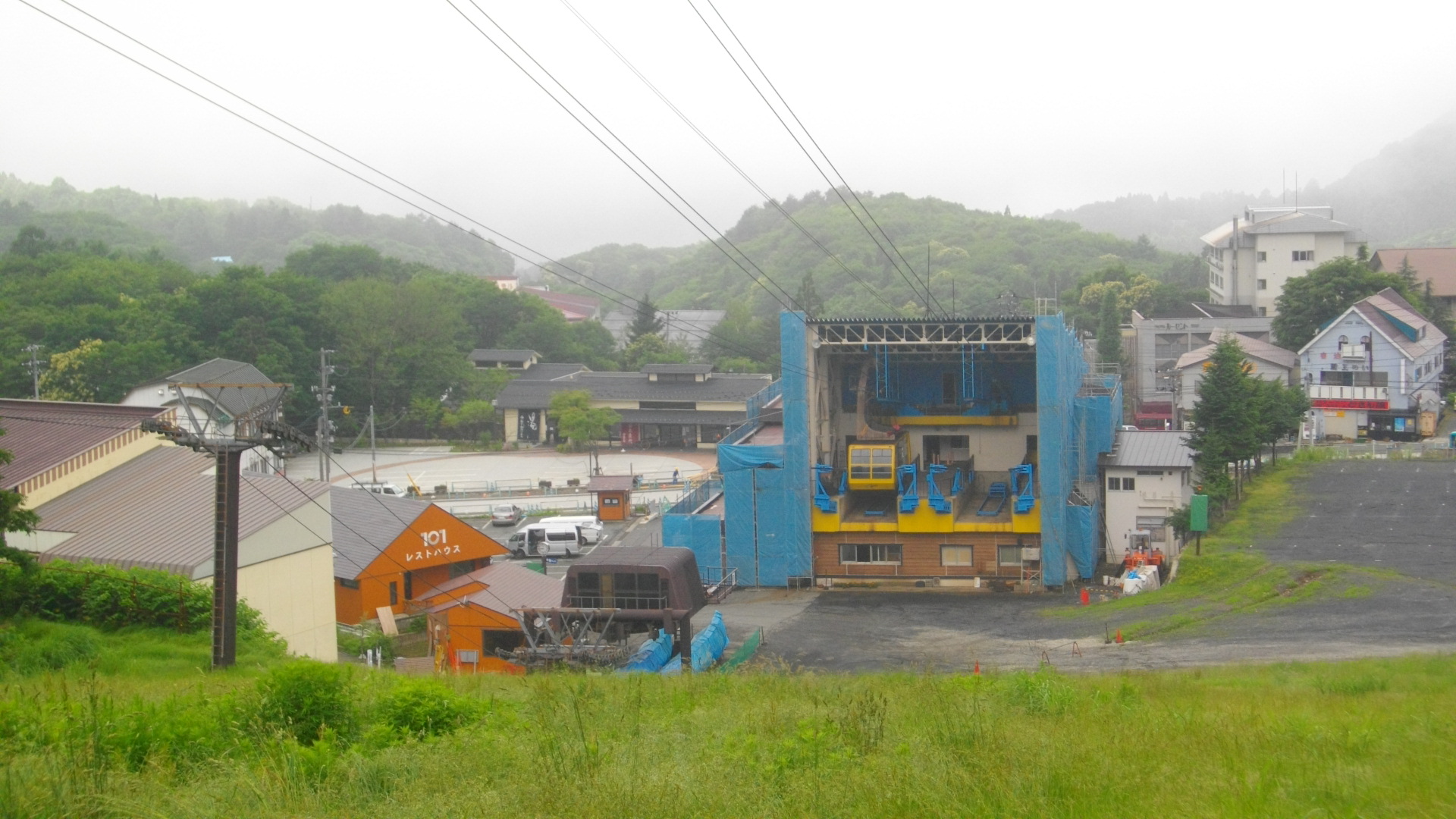 d3409f7d.jpgル・ベール蔵王玄関前・朝7時・18度・晴・強風・隣の庭の巨木ゆらゆらゆれています。樹氷通り新左エ門側の歩道部分の廃湯を流し歩道の一部2m位融雪する工事をしていました。中山鮮魚店脇の一度川橋増設も躯体は終了車道路面部分に着手し始めました。写真は中森ゲレンデ下の蔵王中央ロープウェイ温泉駅です。屋根水漏れと外壁塗装工事の為の工事用足場とネットです。7月16日に終了予定です、綺麗に化粧直しします??全山のスキー場ゲレンデの第1回草刈が始まります。草刈前のゲレンデを歩く際には草の下の穴・溝に気を付け、ドンデンガラに行く先を阻まれたら大回りをして下さい。(今年のドンデンガラ異常なほど大きく多いようです。)