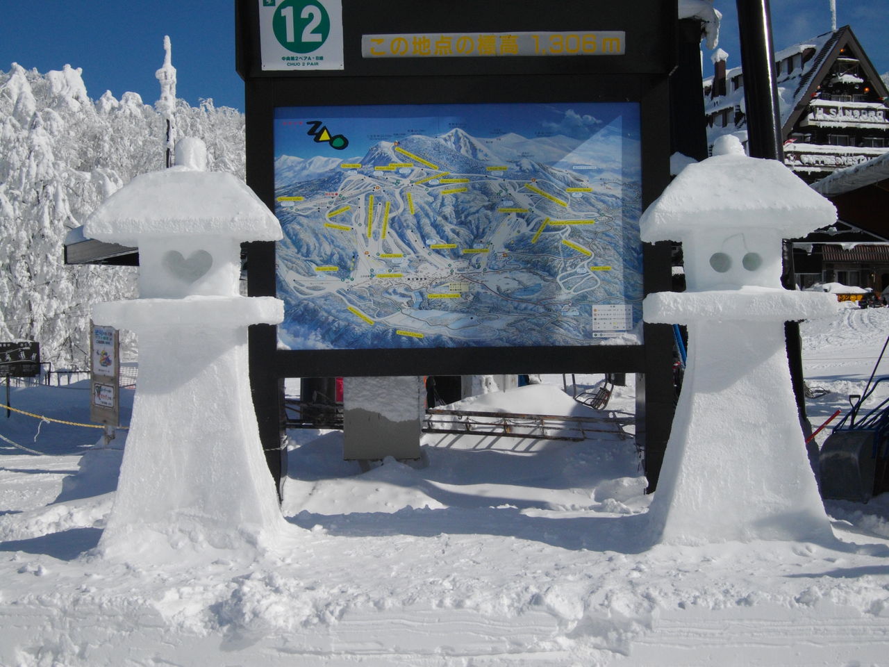 0bfa749d.jpgル・ベール蔵王玄関前・朝7時・−5度・曇・新雪3cm・標高1.200m以上濃霧・弱風。駐車場の昨日溶けた雪がガンガンの氷。久しぶりに駐車しているお客様の雪をスタッフが降ろしています。地蔵山頂駅ー13,3度、雪・パラダイス−12度雪・ユートピア・中央(鳥兜・三五郎・ダイヤモンド)−10度雪・標高1,100m以下の昨日ゆるんだバーンアイスバーンの所があるようです気をつけてお滑り下さい。写真はまだ記念写真を写せる三五郎リフトの雪灯篭2基です。右がさくらんぼ、左がハート型灯篭です。他に見返りリフトのスキーを持ったウサギ・温泉第4リフトのピカチュウ・サンライズのウサギ・蔵王大露天風呂駐車場のウサギ2基で一緒に記念撮影が出来ます。地蔵山頂の蔵王地蔵尊との記念撮影は必ず写して下さい。