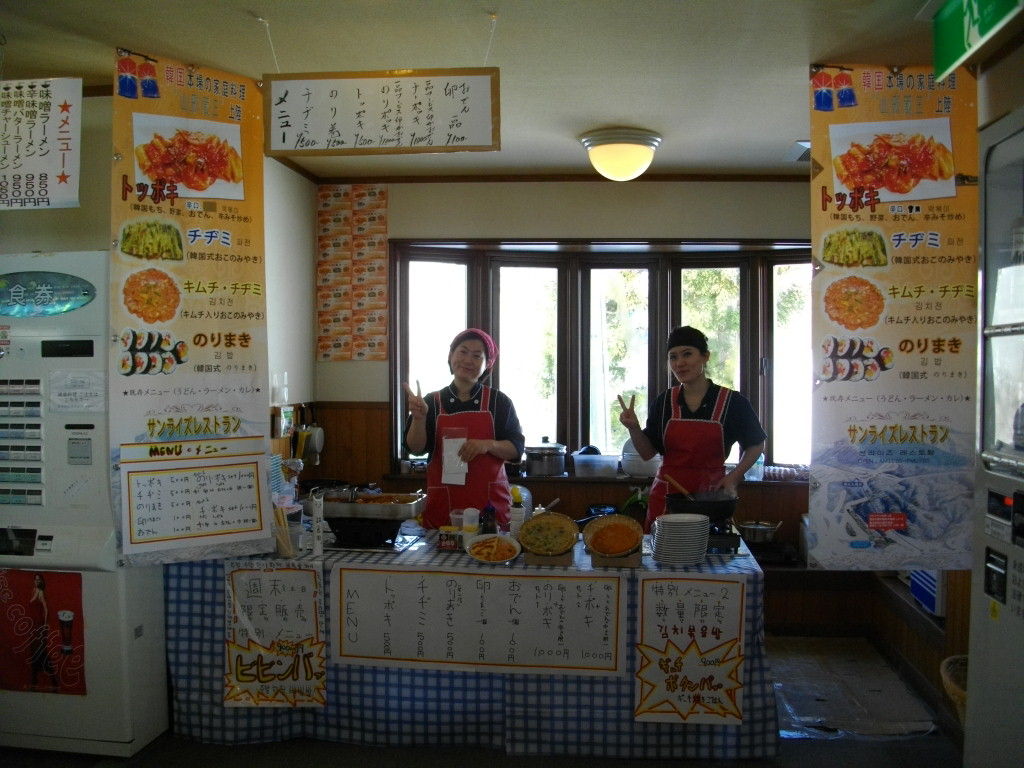 3ff797ed.jpg毎日の様に通っていた蔵王大露天風呂駐車場脇の旧テラスサンパルがサンライズレストランと名称が変わり営業していますが、韓国の女性手造りのチヂミ・韓国風おでん・卵・他韓国手造り料理、週末にはビビンバも出すそうです。写真は販売コーナーで手でVサインしている韓国の女性です、周りにメニューが掲示されています。試食をして来ました。本場韓国料理ですので味が違います。(日本人が造った物と違う。)昨日に引き続き紺碧の空・鳥海山始め山々が見えました。バーン硬く締まり快調です。明日もお日様マークです。今日は地蔵山頂に行きませんでしたがお出でになったお客様大喜びでお帰りになりました。
