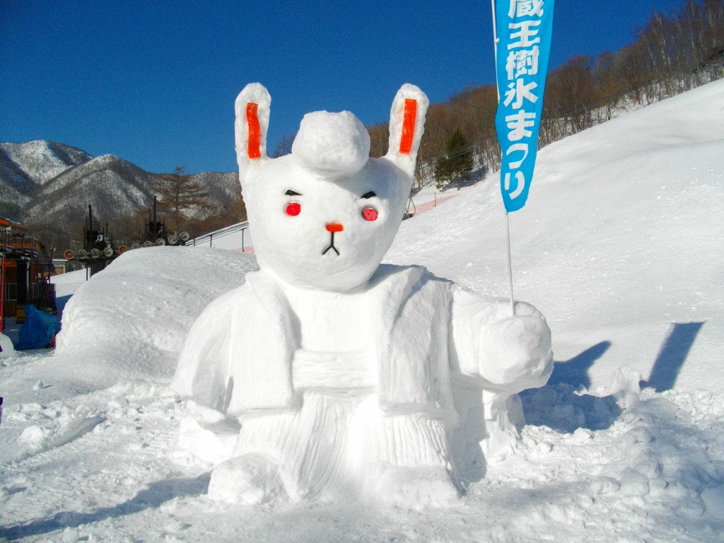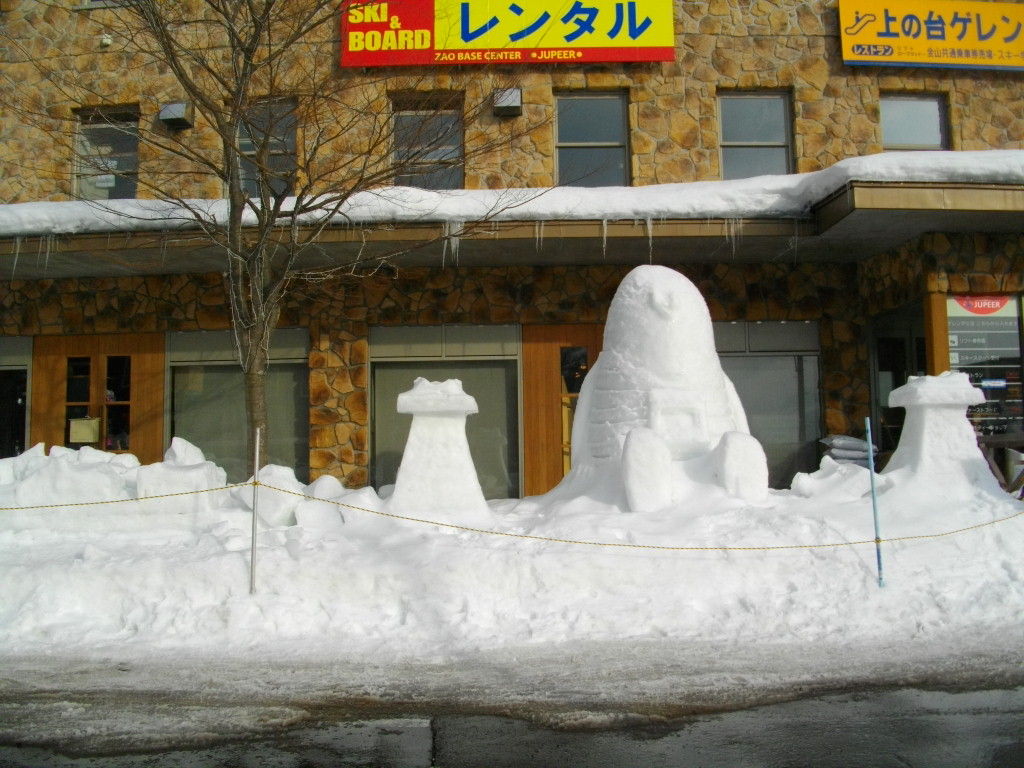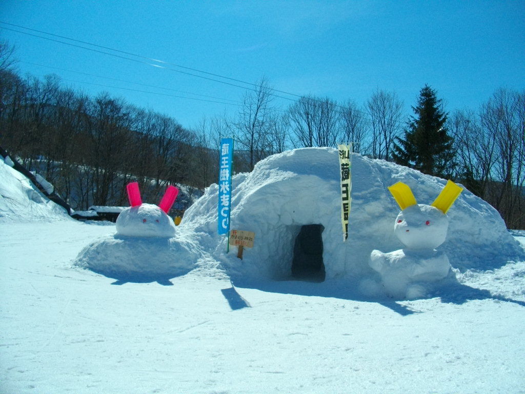 4afe883f.jpgル・ベール蔵王玄関前・朝7時・−3度・無風・快晴・陽がギラギラ輝いています。地蔵山頂−6度・整備されたバーンで滑るのは鳥兜・三五郎・菖蒲沼・ダイヤモンド・ハーネンカム・上ノ台・竜山・ユートピア・百万人・大森ゲレンデです。ギャップを楽しむ場合は黒姫クレージー・黒姫ジャイアント・国体コースです。モーグルは横倉ゲレンデ・ボーダーのジャンプ台・各種器具はコタンのボーダーズパラダイス・中森第二リフトの2箇所です。大平・高鳥両コースも圧雪されています。写真はサンライズに昨日完成した名無しのウサギです。留学生が一人で造りました。雪像で写真を写せる場所は三五郎リフトの雪灯篭・見返りリフトのスキーを持ったウサギ・温泉第4リフトのピカチュウ・蔵王大露天風呂駐車場の2匹のウサギがあります、紺碧の下で雪像と一緒に記念写真を写しましょう。