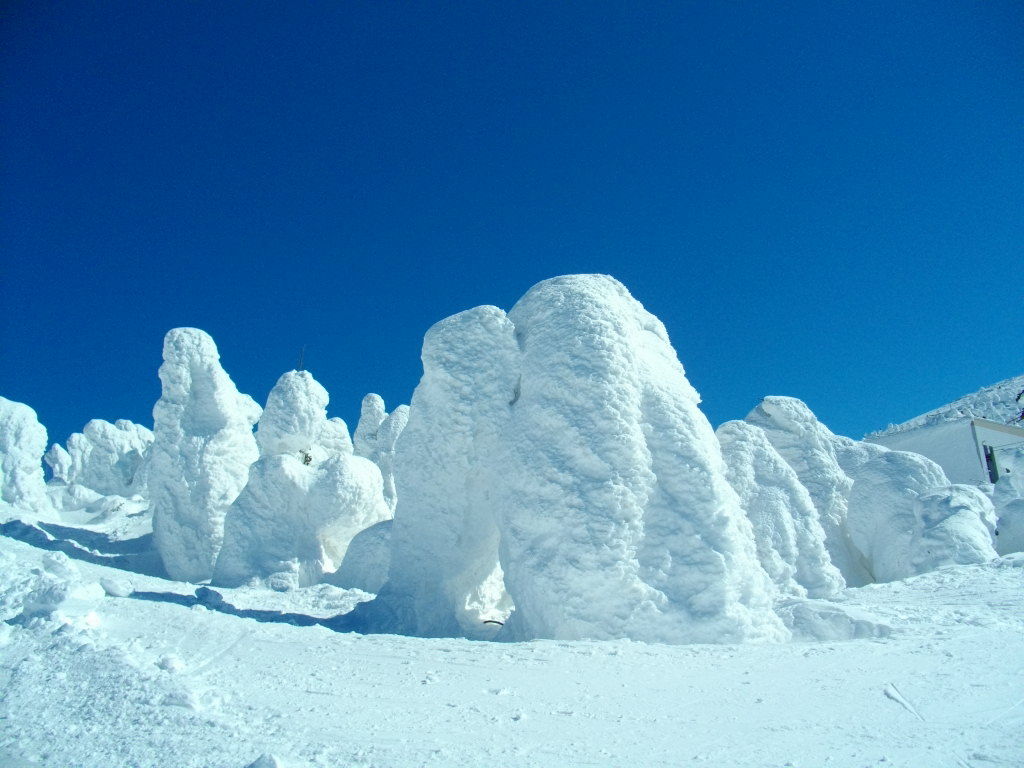 b896b685.jpg昨日雪の坊雪像コンテスト会場(取壊したホテルの跡地)に行きましたが何も無かったので、今朝蔵王温泉観光協会事務局に電話で問合せた所「参加者いないので中止」になりましたとの事でした。当館に何の連絡もありませんでしたので協会事業なのでFaxで会員に知らせるべきと話しましたが連絡はしないと思います???大森ゲレンデ硬いバーン・百万人ゲレンデもフラットで快晴の為皆さん山頂に行ったのかゲレンデガラガラ、黒姫ゲレンデリフト乗り場手前の壁ギャップが出来て危険、フニテル13時過ぎ直ぐ乗車できた。鳥海山昨日より大きく見えました。2日連続の快晴蔵王河童始めて、何十年ぶり???地蔵山頂駅ー3.3度・沢山の観光客地蔵山と地蔵山樹氷地帯に入っていた。写真はザンゲ坂95番標識左側の樹氷まだ見事な樹氷でした。パラダイス迂回コース圧雪良かった、コタンスノーボーダーズパラダイス上級ボーダーがジャンプしたり器具を滑っていた。三五郎・ダイヤモンドゲレンデ硬いバーンゼッケングループが多く滑っていた。ハーネンカム・上ノ台フラット・サンライズ留学生が製作していたウサギ完成して、留学生に名前はと利いた所、「名前決まっていません。決めて下さい」と言っていました。