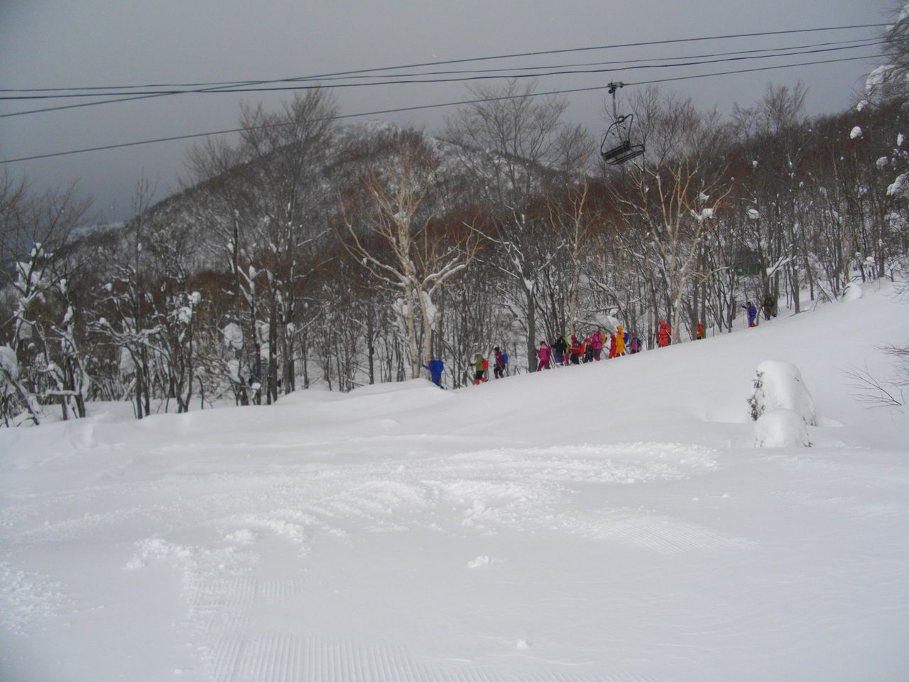 重い新雪でバーン荒れていました、初心者が転んでバタバタして難儀していました。