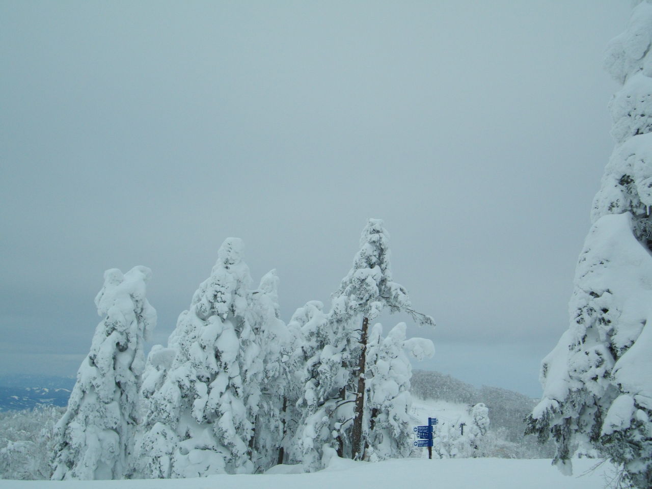 9ce33dda.jpg横倉ゲレンデピステンマークがバーンに残っていました。アストリア第二リフトー2度・視界20m弱・黒姫連絡コース視界20m以下でコース脇の木を見ながら滑った。黒姫レストラン満席(11時20分頃)・ユートピアゲレンデ視界20m以下新雪2cmバーンが全く見えなかった、菖蒲沼連絡コース視界不良で曲がり角見えないほど、ユートピア・菖蒲沼・片貝・三五郎・鳥兜・ダイヤモンド視界15m・新雪2cm・霧氷が綺麗・写真はダイヤモンド第二リフト標識とブナの木に出来た霧氷です。高鳥コース視界無・温泉第二リフト降り場まで濃霧・雨でザクザクの雪が流されフラットの硬いバーンで滑り易かった。上ノ台・ハーネンカム・サンライズゲレンデ硬いバーンでした。明日は硬いバーンに新雪がのりスキーに良い日と思われます。仙台大学が来ていました。