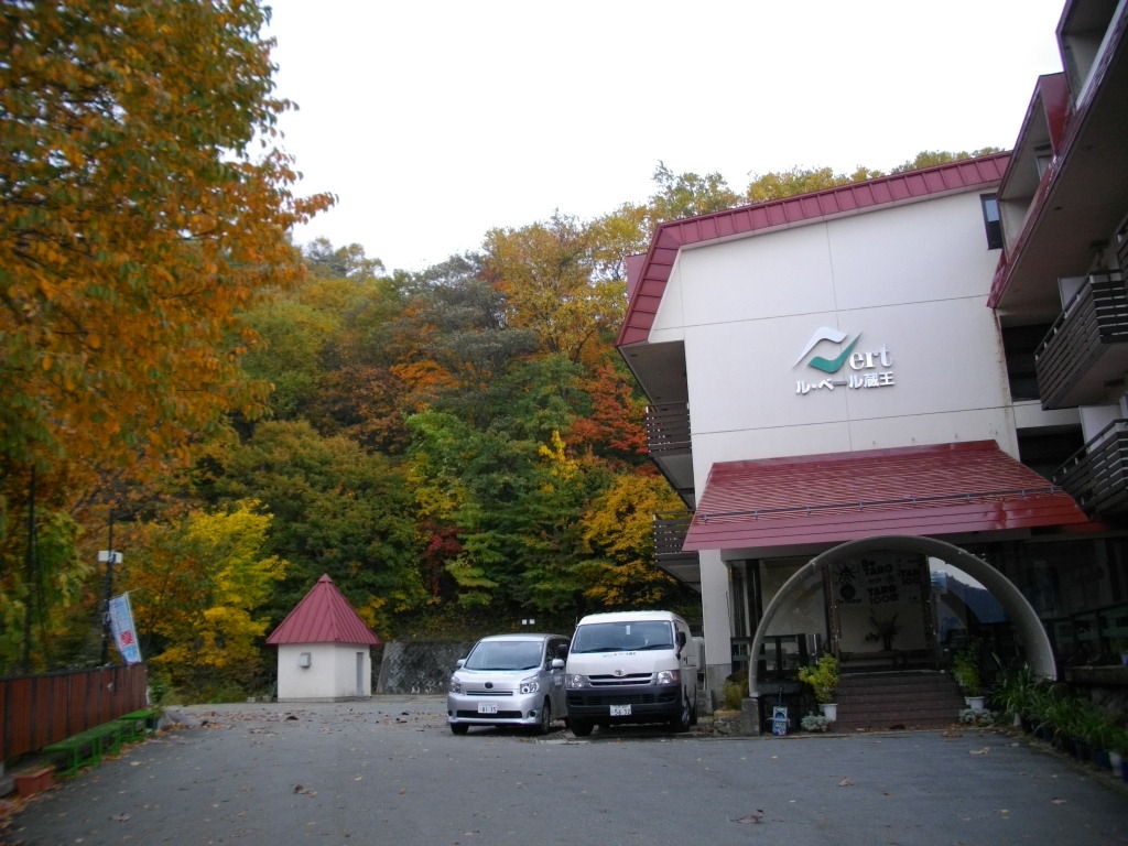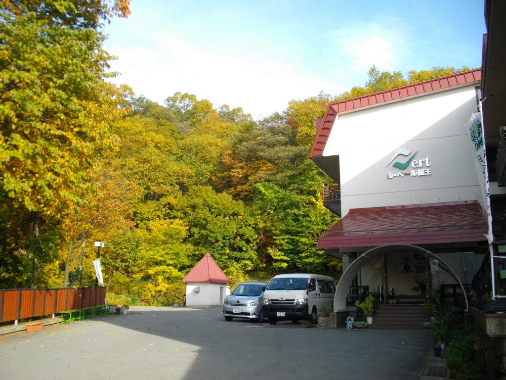 1adeb17c.jpgル・ベール蔵王玄関前・朝7時・12度・曇・強風、地蔵山頂駅・朝8時・6度・曇・風速9m・視界30m、蔵王中央ロープウェイ強風の為ウエイト吊下げて運行。10時10分ル・ベール蔵王発⇒温泉駅10時20分ゴンドラ(鳥兜駅までの紅葉見頃)⇒鳥兜駅到着の際強風でゴンドラゆれた・8度⇒鳥兜山頂蔵王大黒天参拝⇒紅葉峠高松宮妃殿下歌碑(歌碑の文字風化し読みにくく薄くなっていました。)⇒中央散策路(ブナ林紅葉・黄葉終わりかけ。)⇒片貝リフト乗り場(公衆トイレ開いていた。)⇒トニーザイラー記念碑⇒新休息所⇒片貝沼散策路⇒目玉沼散策路ブナ林⇒昭和始めの復元炭焼き窯⇒三五郎岳⇒五郎岳⇒三五郎ゲレンデ⇒国際蔵王高原ホテル解体現場⇒ドッコ沼⇒山の家敷地⇒蔵王大権現参拝⇒蔵王スカイケーブル(強風でゴンドラゆらゆら。)⇒上ノ台駅⇒酢川温泉神社⇒こけし神社⇒上ノ台南通り⇒源七露天の湯⇒一度川⇒ル・ベール蔵王(12時20分着)写真は隣の源七露天の湯駐車場から手前源七露天の湯後ろル・ベール蔵王、右側の階段を下り一度川専用橋を渡り階段を上ると玄関です。