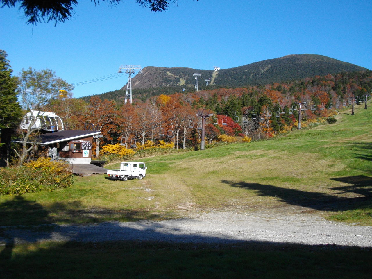 4b17aa21.jpgル・ベール蔵王玄関前・朝7時・3度(今シーズン一番寒い朝)・晴・無風、地蔵山頂駅・朝8時・3,5度・晴・風速1m・視界良好。昨日ユートピア第二リフトチェア取り付けし試運転をしていました。いつ雪が降っても滑れる??蔵王温泉スキー場30数本のリフト初のスキーシーズン向け準備が出来たリフトです。写真は三宝荒神山・地蔵山と紅葉の中ユートピア第二リフトの試運転をしていました。昨日JRの旅行企画「岡本太郎と蔵王(仮称)」の大人の休日クラブ12月号掲載の取材と写真撮影の為、東京からライターとカメラマンがお出でになり蔵王地蔵尊・岡本太郎先生がお泊りになったトドマツヒュッテ等に行きました。1981年から毎年ル・ベール蔵王にお泊りになりスキーを滑りました。来年早々蔵王に樹氷見学・岡本太郎先生の蔵王でのスキー等盛りだくさんの旅をお楽しみいただきます。
