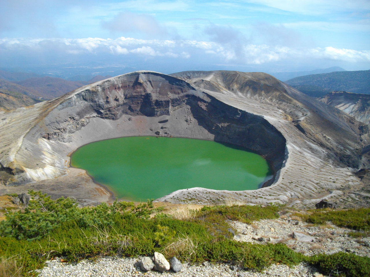 a4529cbf.jpgル・ベール蔵王玄関前・朝7時・6度・秋晴・無風。朝10時ル・ベール発⇒蔵王温泉バスターミナル(刈田山頂行き10時10分定期バス乗車10月24日今シーズン最終運行日)⇒11時10分刈田山頂バス停⇒お釜(写真は今日12時頃の蔵王お釜の写真です。)⇒熊野十字路熊野避難小屋⇒12時15分蔵王山神社参拝(北側に月山・鳥海山がクッキリ見えた。)⇒標高1,841m熊野岳山頂で昼食⇒熊野直降⇒姥神様⇒ワサ小屋標識⇒祓川登山道⇒御田神様⇒いろは沼方面登山道(竹で一部登山道が見えなかった。)⇒いろは沼⇒いろは沼散策路⇒ユートピア夏山リフト⇒山麓線⇒山麓駅駐車場満車・大型観光バス3台・中型観光バス2台も駐車⇒能登屋銘品館後ろの旧山のホテル屋根の下まで解体され見えなくなった。蔵王中央ロープウェイ駐車場半分駐車していた。蔵王エコーライン今日から夕方5時から翌朝8時迄通行止め、蔵王ハイラインは4時30分通行止めです。ハイラインは11月3日迄営業と駐車場スタッフが教えてくれました。