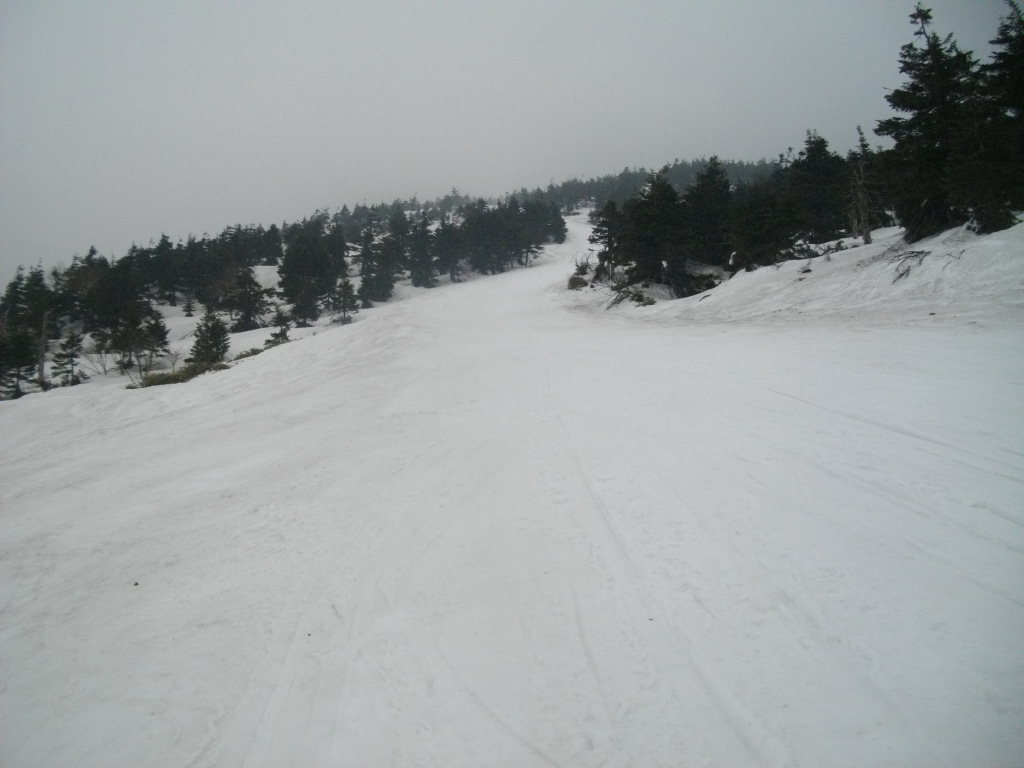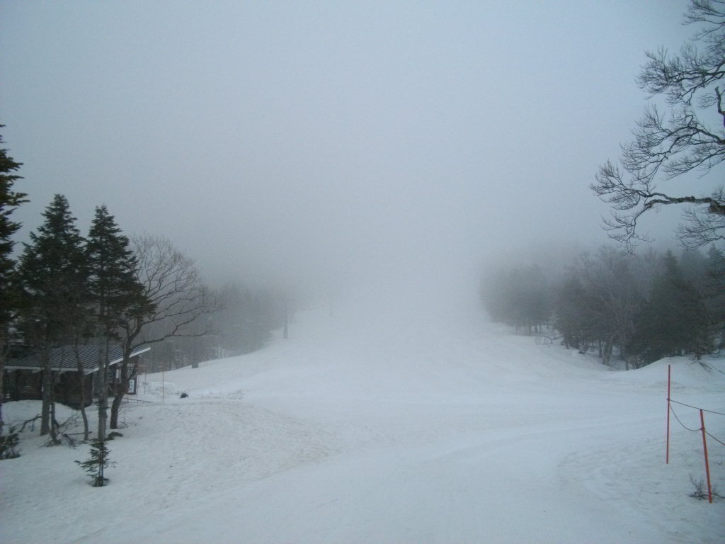 山麓駅駐車場20台駐車、山麓線伝蔵山は雲の中、樹氷高原駅濃霧フニテル乗車せずユートピアゲレンデで滑る事にした。14バーンピステン圧雪してくれてピステンマークの上をハイスピードで滑った。写真は濃霧が一瞬晴ユートピアゲレンデが見えたゲレンデです。ウイークデイ5回リフトを乗車するとレストラントドマツでソフトドリンクサービス、券を渡されレストランに行きましたが昨日朝はソーセージ・今朝はポテトフライを頼みました、ケーキがあればとソフトドリンクを飲みに来たスキーヤーと話になりました。昼食の際はいりませんが朝はケーキが必要では???濃霧の百万人ゲレンデをノンストップで滑りましたが全面丁寧にピステンフラットに圧雪してくれていました、真冬よりも良かった。横倉山麓駅まで圧雪されて約4キロ一気に滑り降りれた。山麓駅朝から100名以上乗車したようです。地蔵山頂駅・2,2度・濃霧・弱風・ザンゲ坂ピステン両側の高い所を削ってくれて昨日と段違いに滑りやすかった。トニーザイラーコースコブコブ凸凹でしたが昨夜の雨でバーンは硬かった。大平コースもバーン硬く3月末の状態でした。サンライズバレー全面滑れた。かもしか大橋残雪20cm今週末まで残るか???