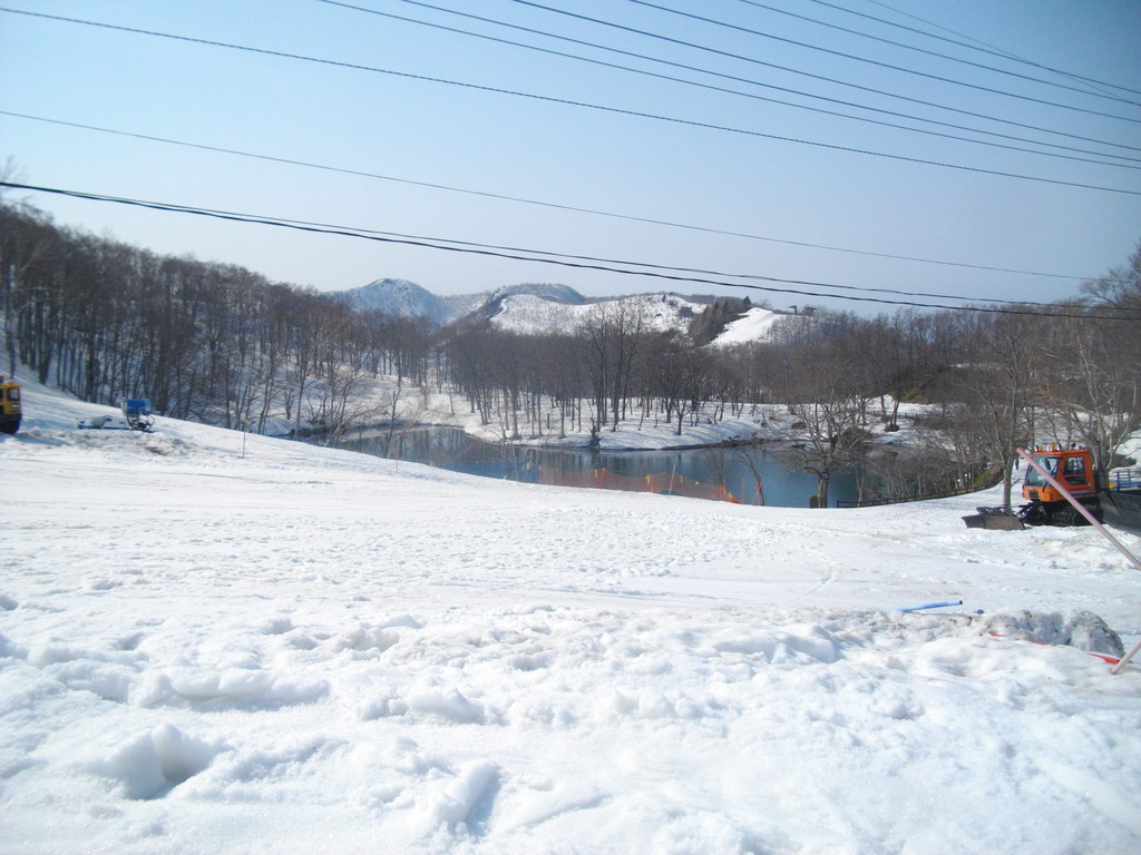 地蔵山頂駅・鶯がホーホヶキョと囀っていました。ザンゲ坂凸凹を削り幅広くフラットに圧雪してくれていました・感謝・感謝。ユートピアボーダーがスラローム用ポールゲレンデの幅60%以上に2列のポールを設置していた、40%以内の幅にさせるべき???蕗の薹が出てきていました。レストラントドマツ混雑していた。ユートピア第一リフト夏山リフトにするためチェアを取り外していた。百万人ゲレンデ全面硬いフラットなバーン・横倉の壁まだ滑れます。横倉最下部リフト側の斜面、地面が出てきたので右の迂回コースが安全全面滑走可能。写真はトニーザイラーコースフラットでこんなに雪が多くバーンが硬く滑り易いのにビックリして滑り降りました。大平コースも圧雪されフラットでした。上の台も全面滑れジュピア前の巨大かまくら入口を閉鎖していたがまだ健在。蔵王温泉第3リフト脇のゲレンデを使い5月連休に営業再開させるためスーパースライダーコースの除雪をしていました。中森ゲレンデ・上の台ゲレンデは雪質シャーベット状でしたがそれ以外は硬いスピードが出るバーンでした。