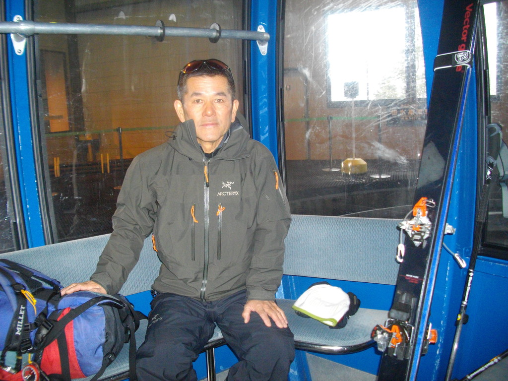 山麓駅20台強駐車・地蔵山頂駅・3,2度・濃霧・中風、ゴンドラで上の台竜山ゲレンデ入り口のドラゴンカフェ新田店主に会いました「今日冬の熊野岳記念の20回目登山日」との事でした。写真はフニテル内で写した新田店主・冬の完全登山装備でした。地蔵山頂で登山届を出して濃霧の視界が無い中地蔵山へ登って行きました。今日は珍しいスキーヤーにお会いしました1自衛隊スキー訓練隊40名弱が樹氷原コースを濃い緑の軍隊服で集団で滑り降りてきました。その後、横倉ゲレンデでスキー訓練をしていたそうです。2鳴子の女子スキーインストラクターがユートピアでシニアスキーヤーを教えていました。濃霧のザンゲ坂、圧雪されフラットですがコース真ん中凹んでいます。樹氷原コース・ユートピアゲレンデ硬いバーンで例年のザラメ雪質で無く蔵王河童の脚力でも雪面刻め無いほど硬かった。32本滑ってきました。山形市内19度とラジオで報じていたがユートピアは7度、中風が吹きバーンシッカリ締り硬かった。標高1,500m以下は濃霧が無く視界良好でした。