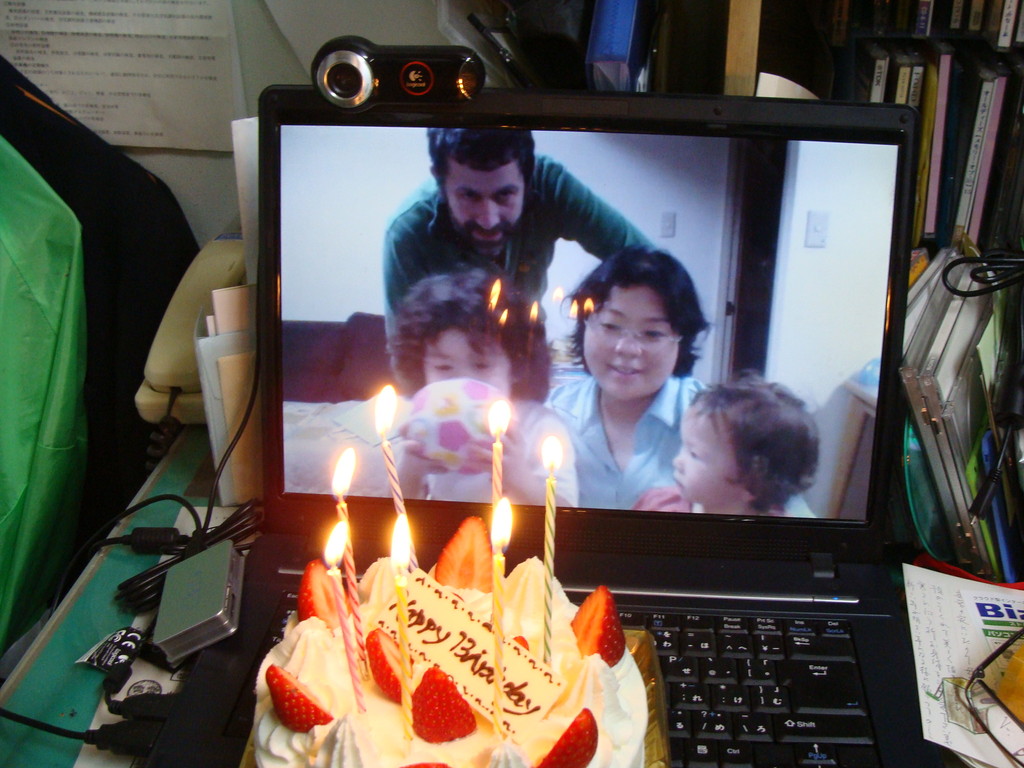 昨夜スカイプでバースデーケーキのキャンドルを孫と消しました!!!