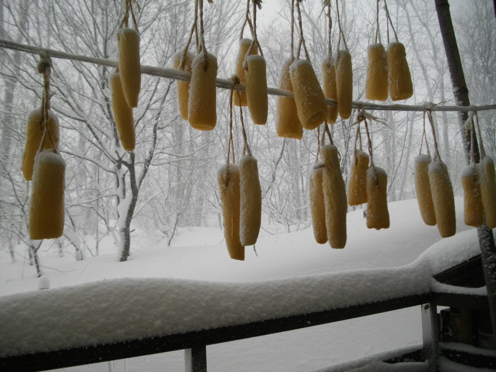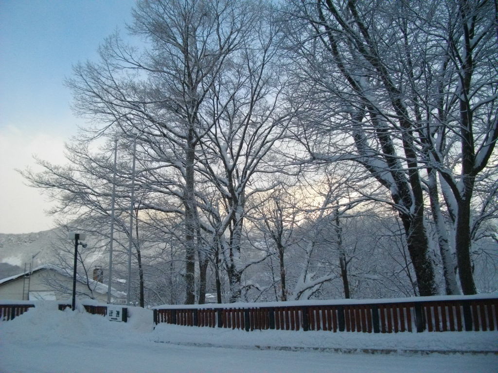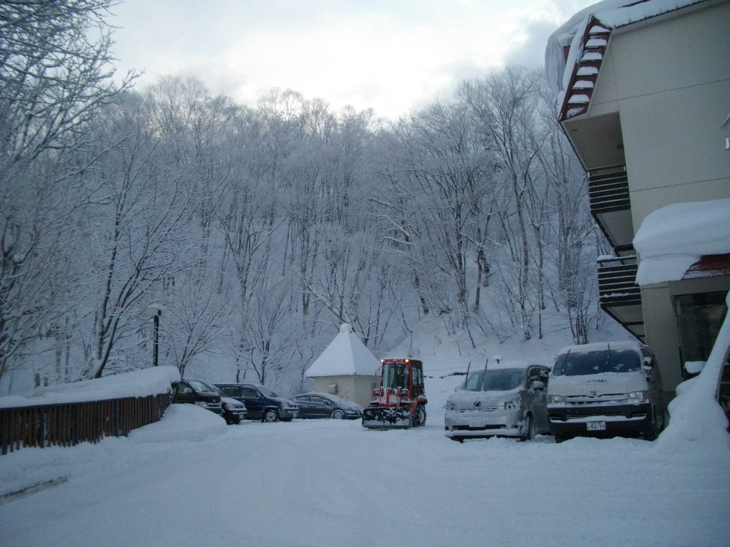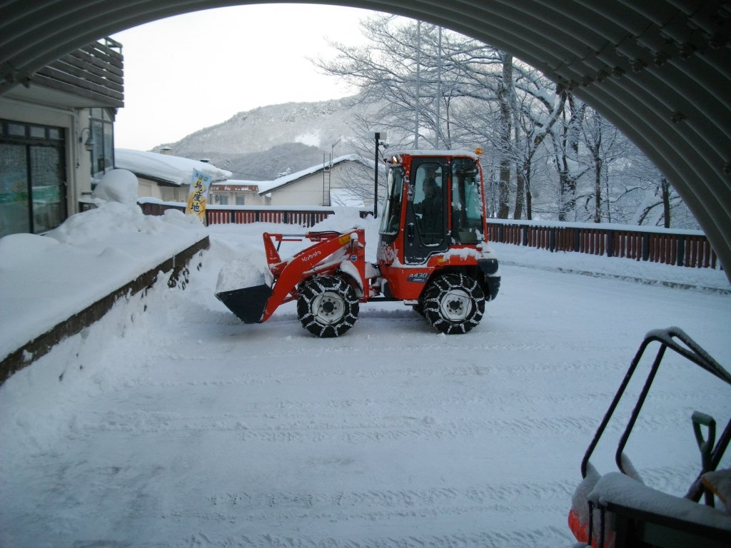 ル・ベール蔵王玄関前・朝7時・ー10度・晴・新雪15cm積雪・視界良好・中風。地蔵山頂駅・ー16、5度・ユートピアゲレンデ275cmと今シーズンの積雪記録更新、写真は早朝から除雪車を運転してくれているスタッフです。2枚目は駐車場と裏山の木々霧氷で真っ白です、向かって左側蔵王温泉大露店風呂の廃湯が流れてくる一度川です駐車場の雪を捨てられます。3枚目は温泉棟です手前の凍み大根カラカラになりました、温泉盗の屋根が雪で壊されました。昨日午後二度川源泉の自然噴出口からの湯管雪の重みで壊され蛇洗川湯花採取組合の皆さんが修理をしに源泉まで大雪の二度川を昇り補修をしてくれました。今朝は湯量が多く湯船の温度が44度以上になりました。ゲレンデ新雪で柔らかいバーンになっています吹だまりがありますので両サイド気をつけてお滑り下さい。コメントで身体障害者スキーヤー割引の御問合せありましたが残念ながら、蔵王は対応していません。コメントをお読み下さい。