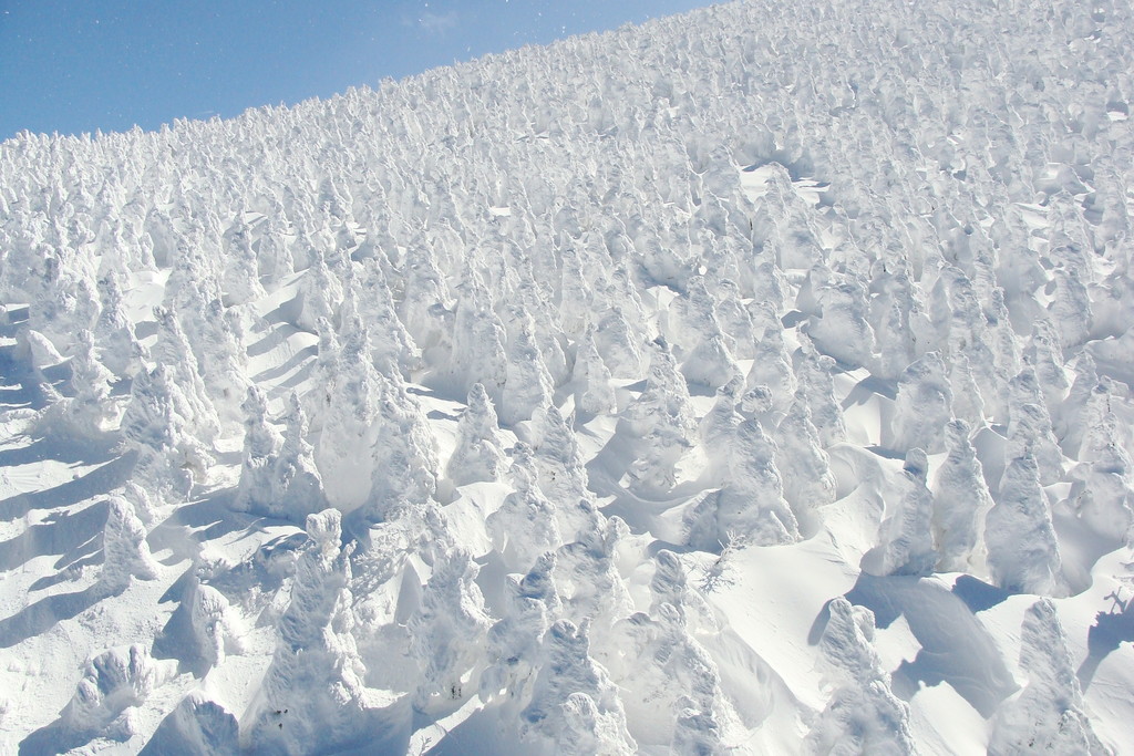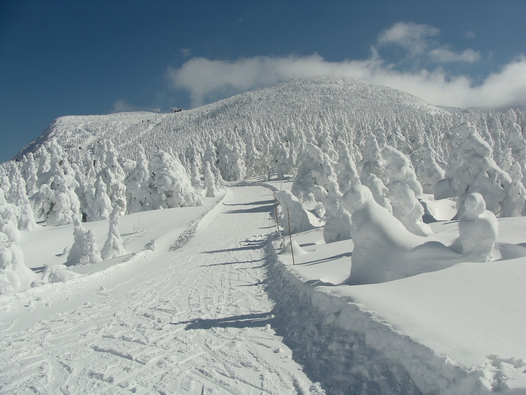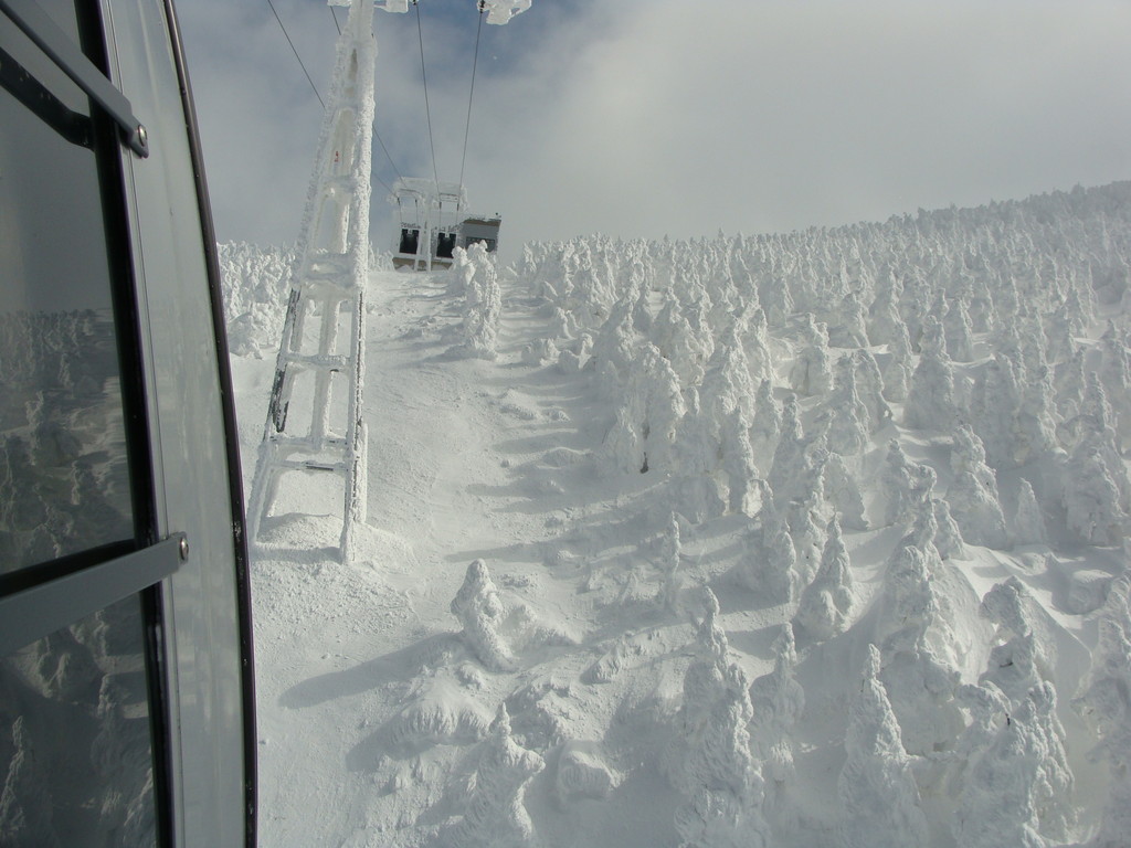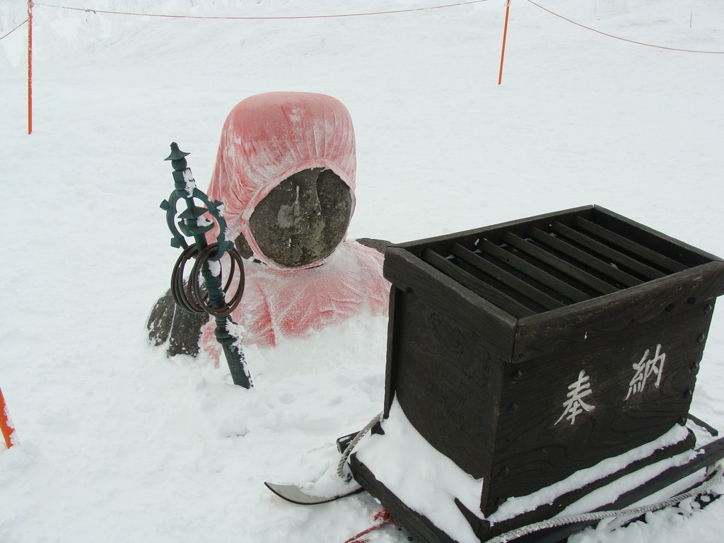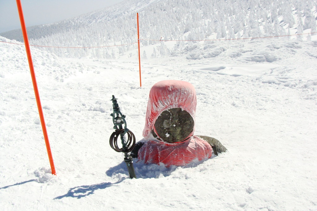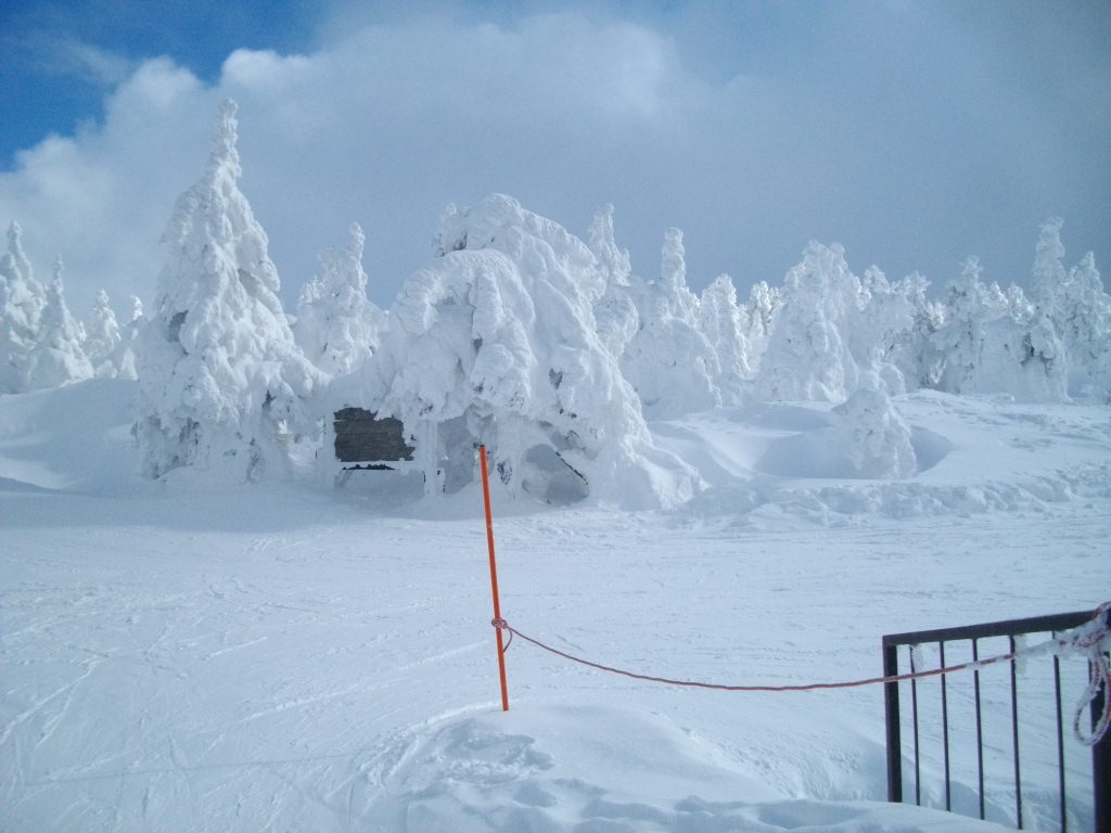 大森リフトから黒姫リフト・ユートピア第二リフトから樹氷原コース55番標識から地蔵山・熊野岳・樹氷地帯の写真を写しました。3枚目は地蔵山頂駅までのフニテルからの樹氷原です。4枚目は東京からコマーシャル撮影に来たPR会社の撮影風景です。ビデオをつけて撮影していました。5枚目は蔵王地蔵尊様です。賽銭箱が近すぎてお地蔵様の良い写真が撮れませんでした。ザンゲ坂大混雑でした。三郎・鳥兜・ダイヤモンドゲレンデもガラガラでした。見返り・ハーネンカム専用ゲレンデ状態でした。フランス人の宿泊客様新しいブーツを購入し滑りにお出でになりましたが足に合わず、ベストレンタルで調整してもらい滑っています。