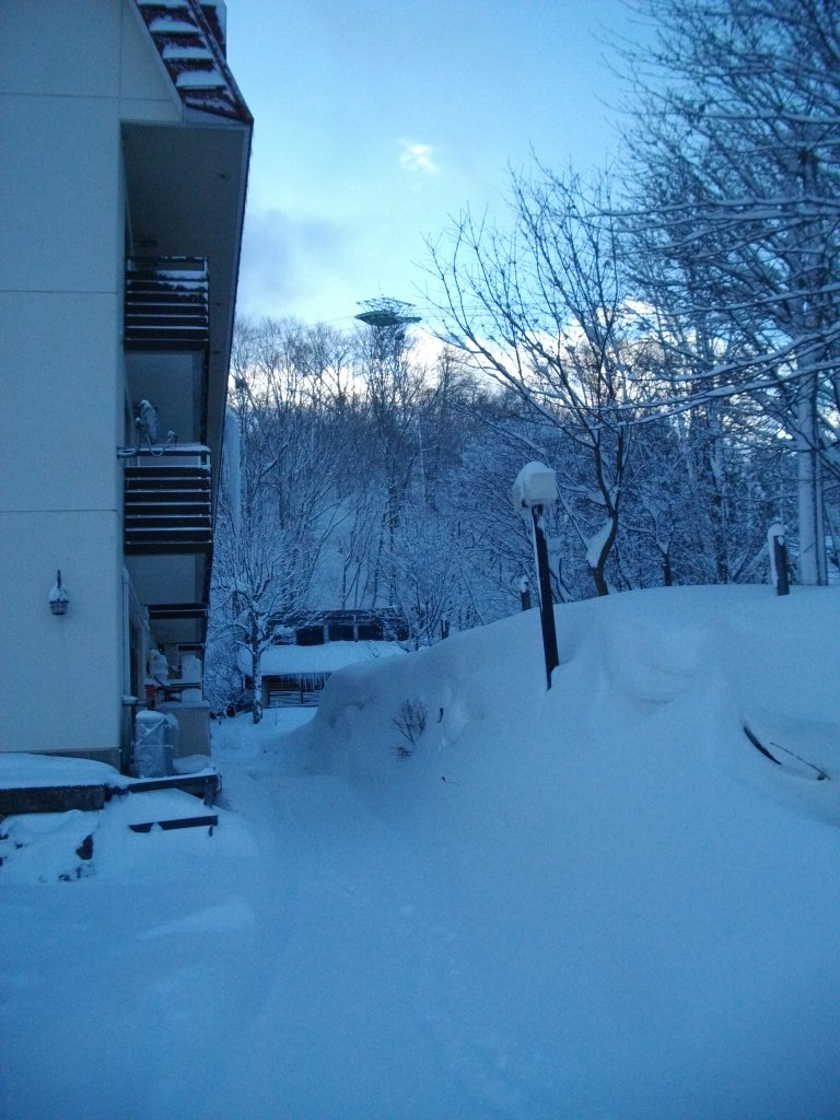 大雪が降りました、30cm弱新雪が昨夜から積もりまだ積もりそうです!!!