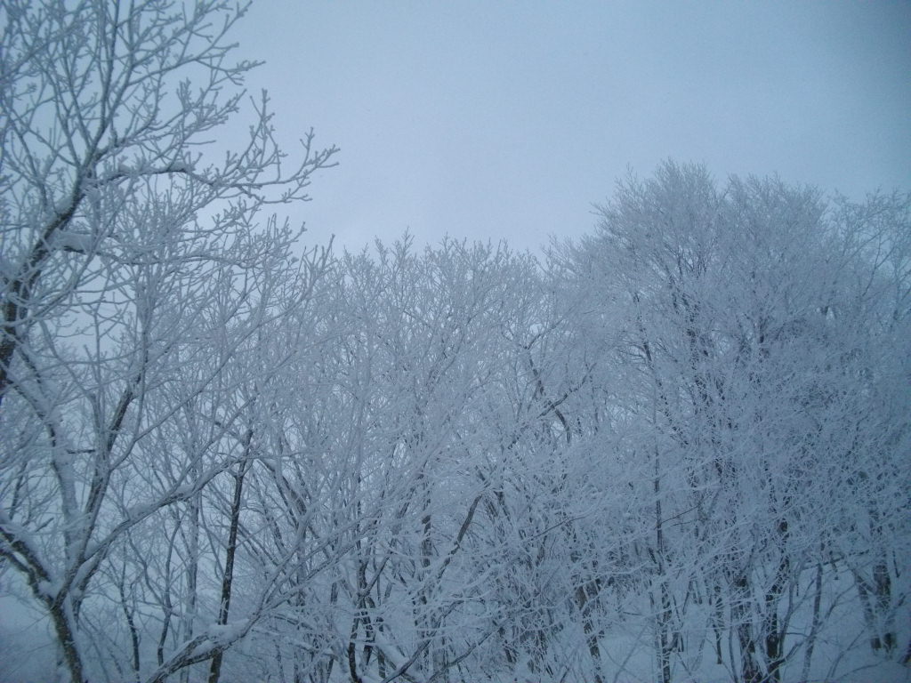 ル・ベール蔵王玄関前・朝7時・ー2度・曇・弱風・標高1,100m以上雲の中・伝蔵山は見えません。標高1,300m以上パウダースノーでお滑りいただけます。写真は隣の東京海上日動火災蔵王山荘の雪下ろしです14日15日の2日間で作業をします。庭が大きいので屋根から下ろすだけで済みますが今シースン初めての作業です。閉鎖していても管理に費用がかかります。2枚目は地蔵山頂の樹氷です大きく成長しましたがホワイトアウトで良く写せませんでした。昨夜樹氷ライトアップにお出でになったお客様・ライトアップ鑑賞バスが10台以上来ていて地蔵山頂まで長時間乗車待ちがありました。3枚目はサンライズでスポーツ医科学大学生が冬山救助の実習をいている所です。数大学がスキー実習と冬山実習を行っています。