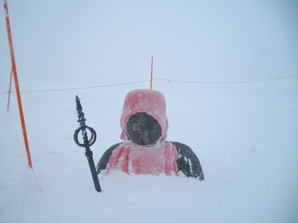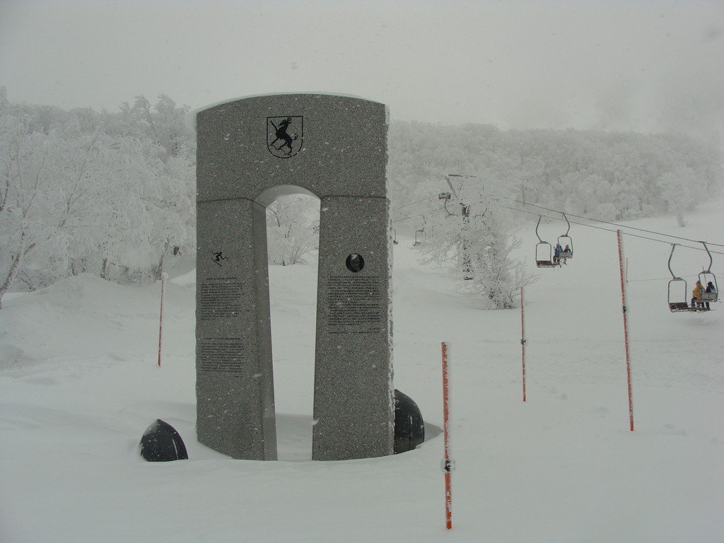 大森ゲレンデから黒姫ゲレンデ経由フニテルに乗車しました。樹氷高原駅乗車数台待ち、地蔵山頂駅混雑ー8度・写真は出口右前の樹氷です。2枚目は蔵王地蔵尊様腕が雪の下に埋まりました。ザンゲ坂98番・97番案内板右側の樹氷も復活しましたがホワイトアウトの為写真に写せませんでした。ザンゲ坂フラットに圧雪してくれていましたが雪面が見えませんでした。3枚目の写真はパラダイスのトニーザイラー顕彰碑です。三宝荒神山も薄ら見えました。三郎ゲレンデのボーダー用大ジャンプ台4基に沢山のヤングボーダーが挑戦していました。鳥兜リフト左の例年出来るモーグル用凸凹のコース滑る人が少なく1本だけです。