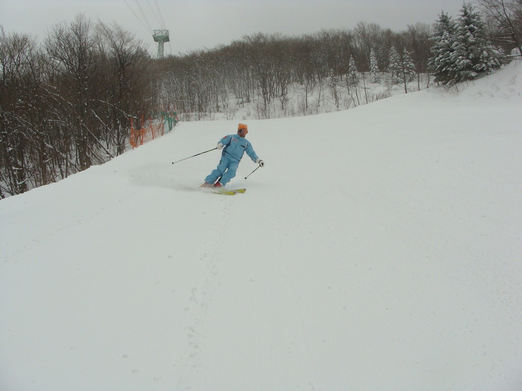 写真は米寿のスキーヤーA様の見事な滑りです!!!