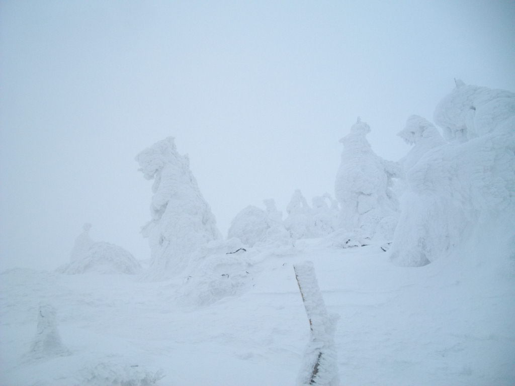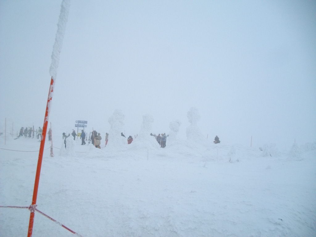 地蔵山頂ここ数日の荒天で樹氷復活見学者大喜び!!!