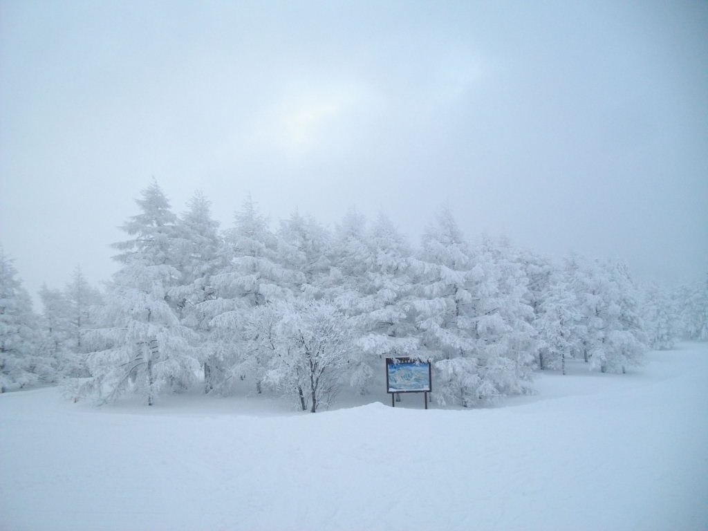 標高1,300m以上はパウダースノーですが濃霧です!!!!