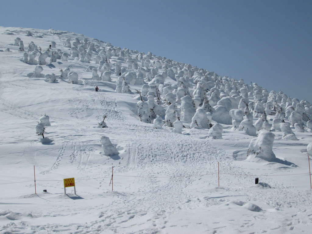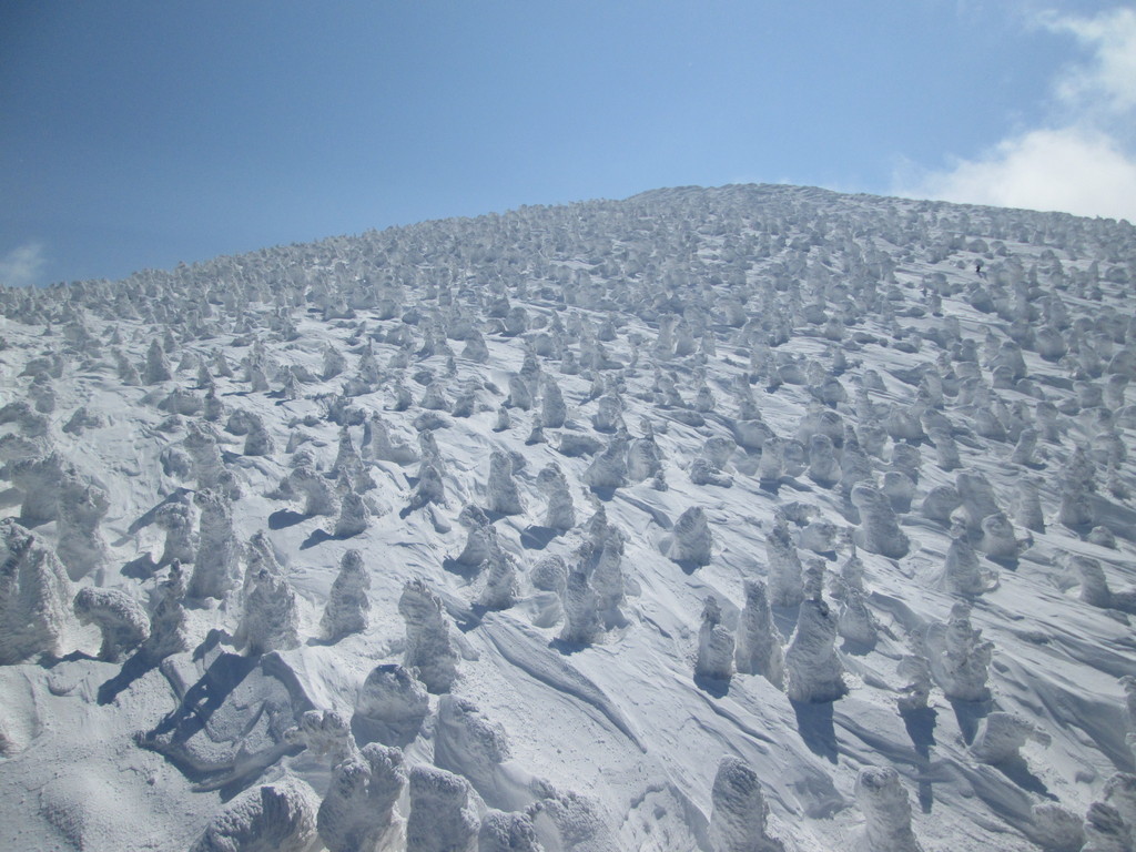 地蔵山の樹氷原地帯です、3月下旬でこんなに出来のいい樹氷が!!!