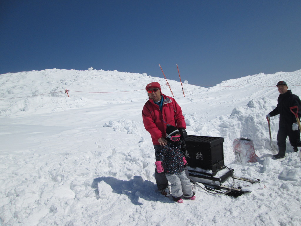 昨日は山麓駅・温泉駅駐車場満車で地元からのファミリーでゲレンデ大混雑でした、地元山形ロータリー次期会長長谷川ファミリーと蔵王河童孫と一緒の記念写真です。
