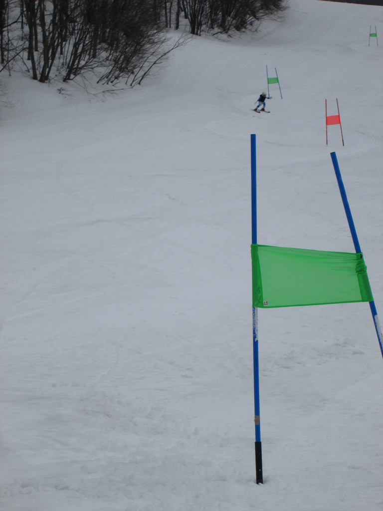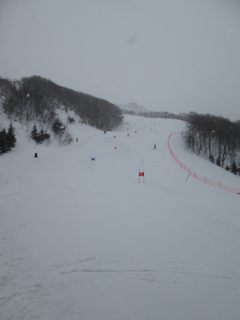 ル・ベール蔵王玄関前・朝7時・-1度・濃霧・中風・玄関前10cm以上春の雪が積もりました!!!今日からスプリングシーズンリフト料金になります、1日券が4,800円⇒4,000円・宿泊者割引も4、400円⇒3、900円です。ル・ベール蔵王ホームページイベント情報で詳細ご覧下さい。ハーネンカムで第78回蔵王スキー大会スラローム競技が行われます。写真は昨日のGSゴール付近です。