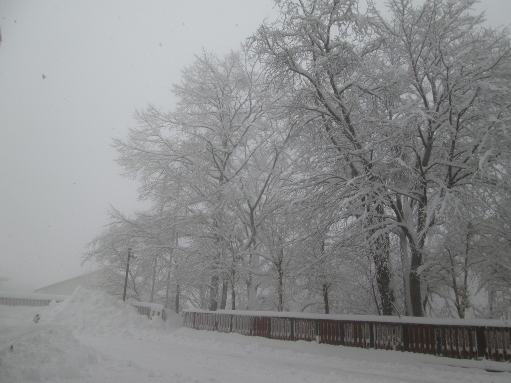 早朝から除雪車活躍・木々は重い雪が着いています。
