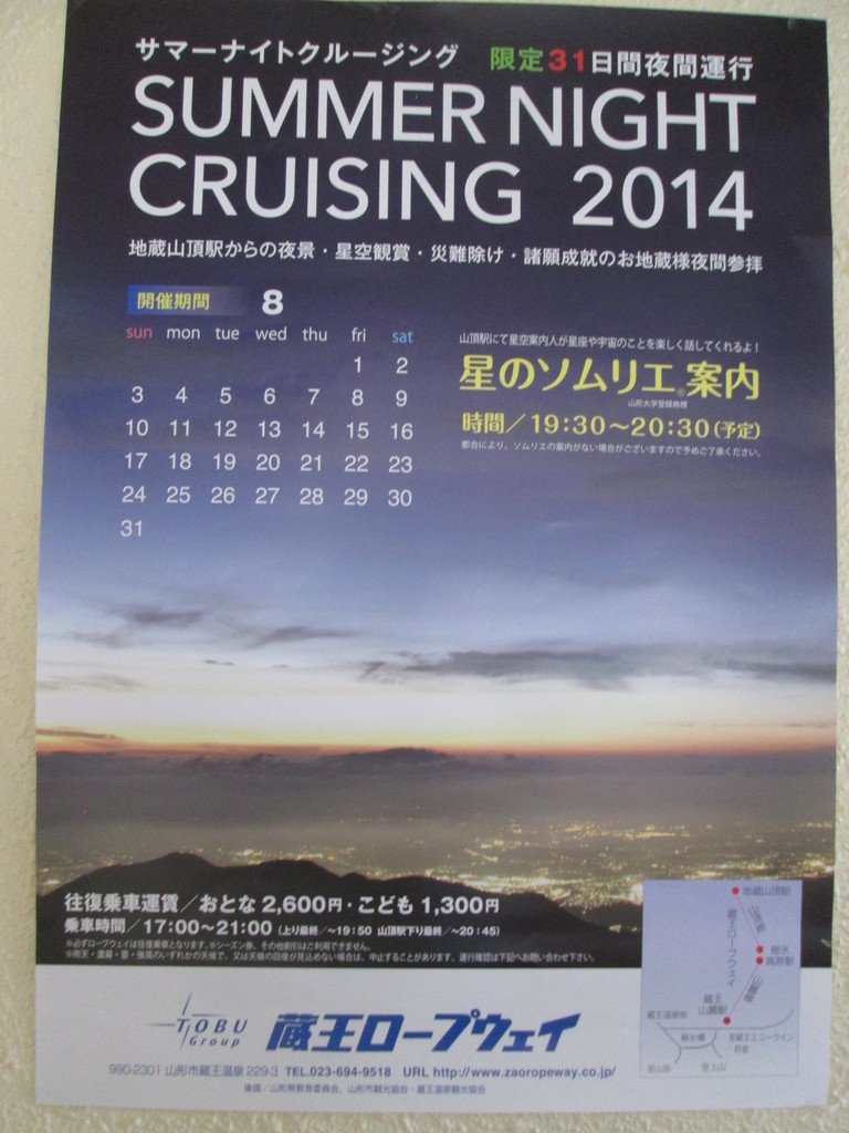 ル・ベール蔵王玄関前・朝7時・21時・雨模様・曇・蝉が鳴いていません!!!無風。昨日龍岩祭2014の公式ページから会場マップとタイムテーブルをプリントし内玄関に掲示しました。8月22日23日は秋田の大曲全国花火競技大会のお客様が蔵王温泉にバス数十台お泊りです。ル・ベール蔵王も満館です。
