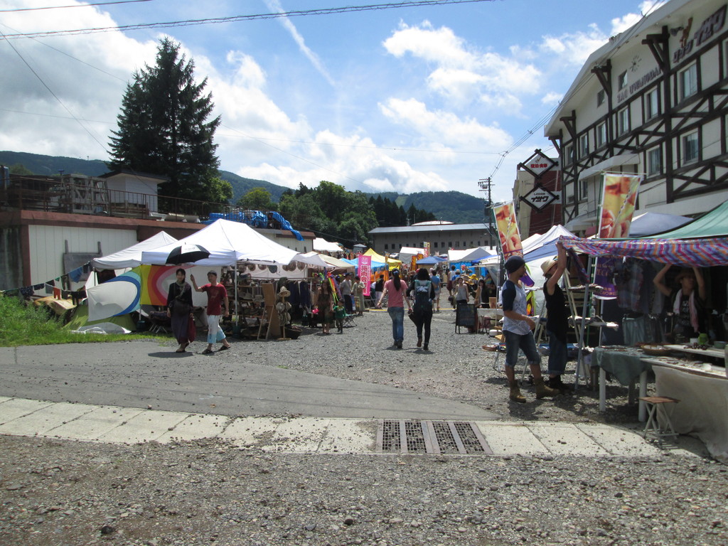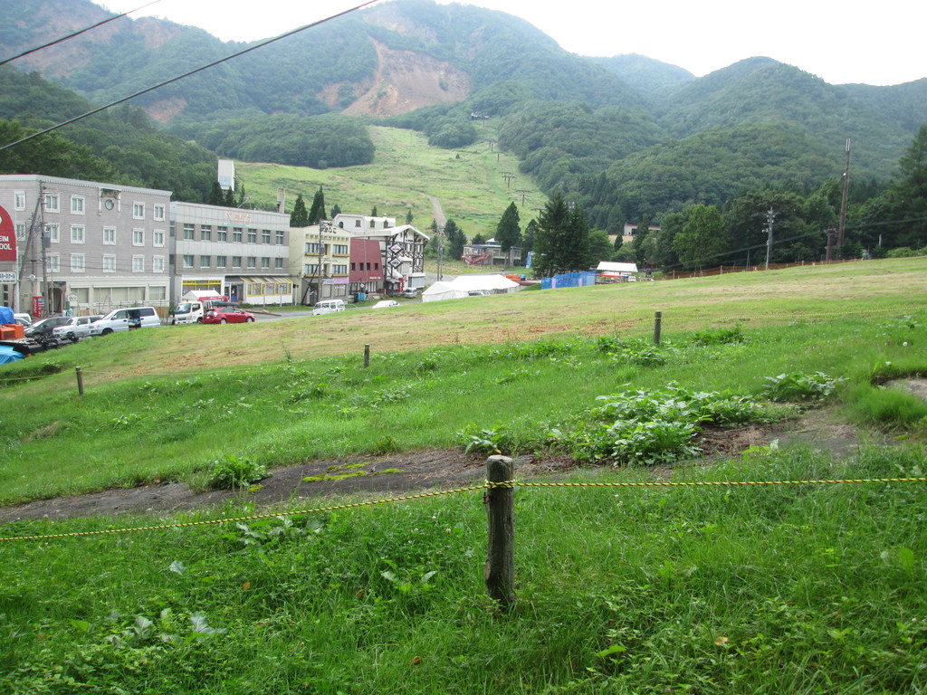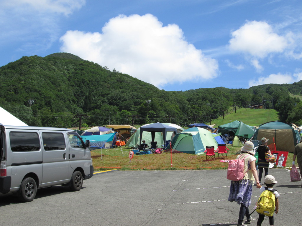キャンプサイトの下は本部・みちのく堂・ショップエリアです。真ん中奥の龍山ゲレンデにはMOOM STAGEが出来ます。上ノ台民宿前は冬のスキーシーズンより沢山ヤングが集まります!!!演奏は各日21時迄です。
