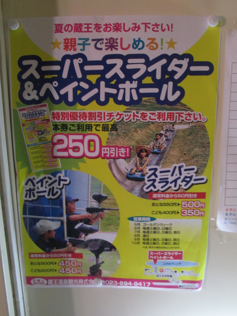 上ノ台でヤング・ファミリーに好評の蔵王温泉第三リフトに乗車、約500mのスーパースライダー連日営業していますが、9月からは土・日・祭の営業になります。8月31日までは連日営業しています、特別優待割引チケットフロントにございます。
