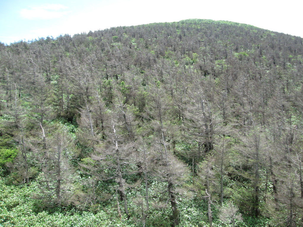 昨日の山形新聞に五郎岳付近のブナ林ガの食害!!!