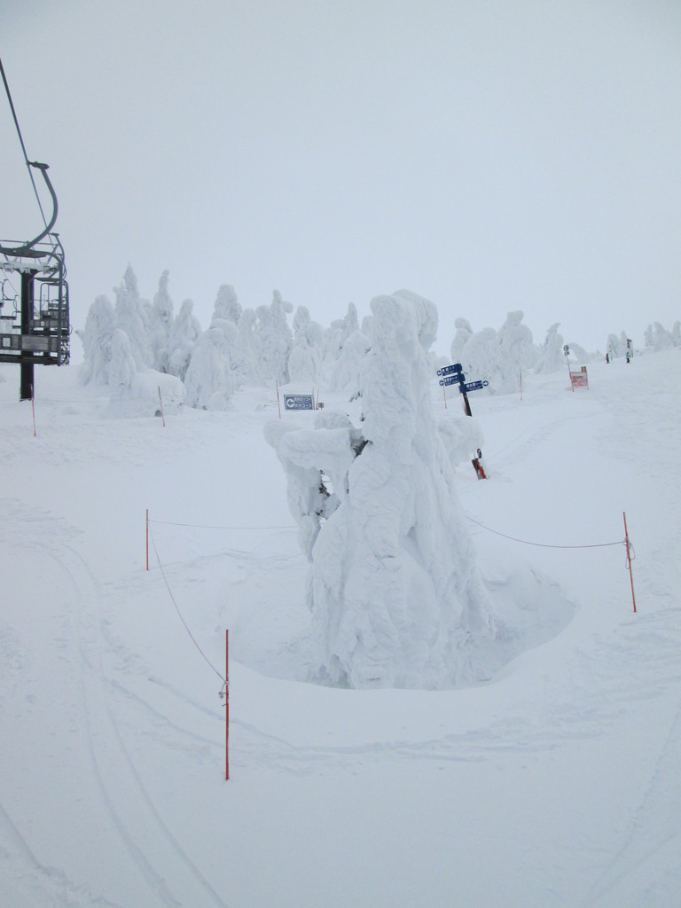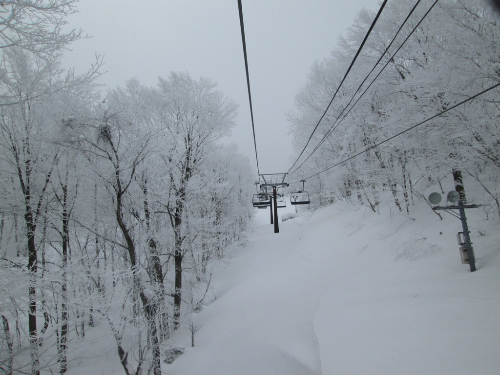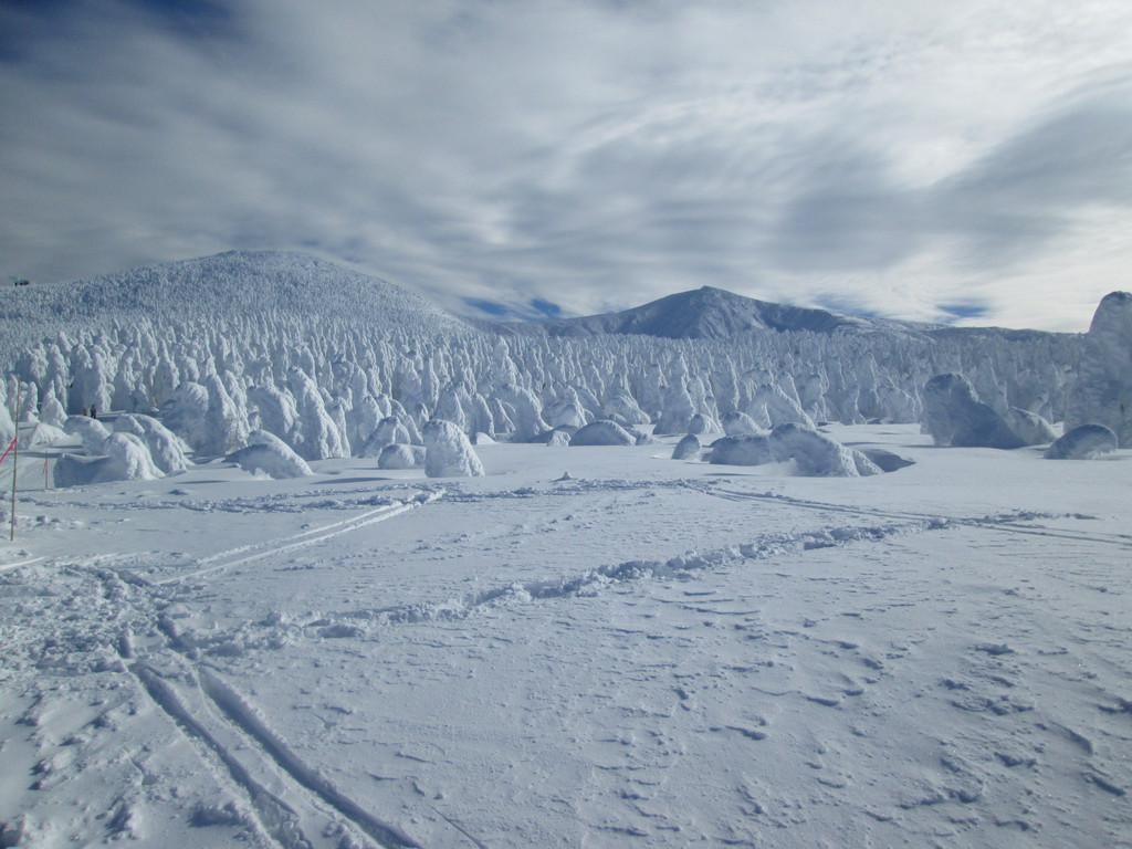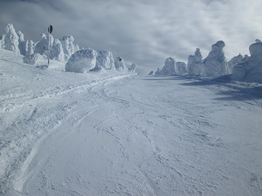 標高1,200m迄アイスバーン・それ以上はパウダースノー・全山霧氷!!!