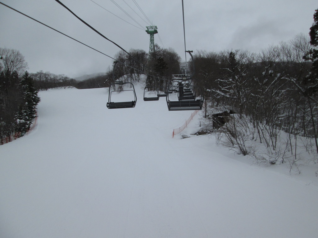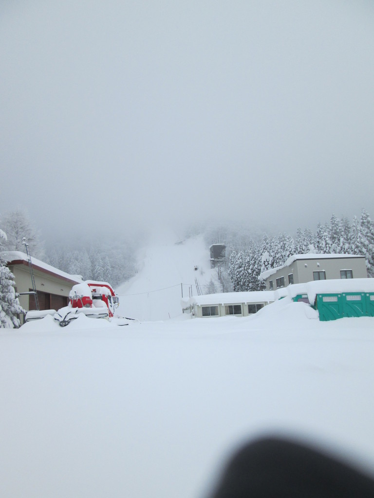 寒いのに水分の多い雪質の雪がピステン圧雪後30cm以上積もった視界数mの鳥兜ゲレンデを滑って来ました、昼からの新春年始めで山形市内湯殿山神社に行く為朝一番で滑りました。