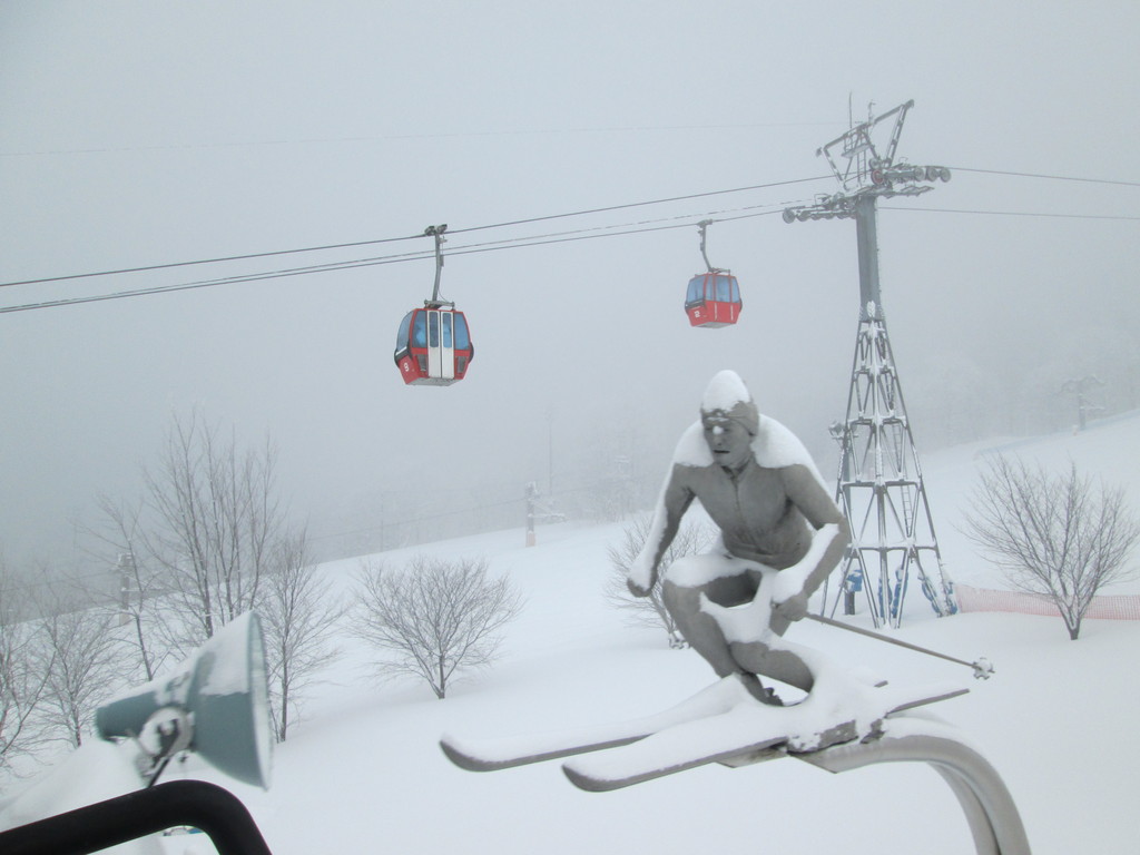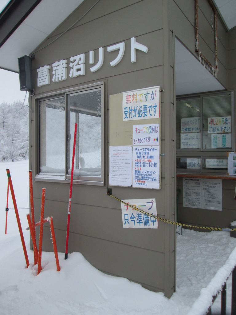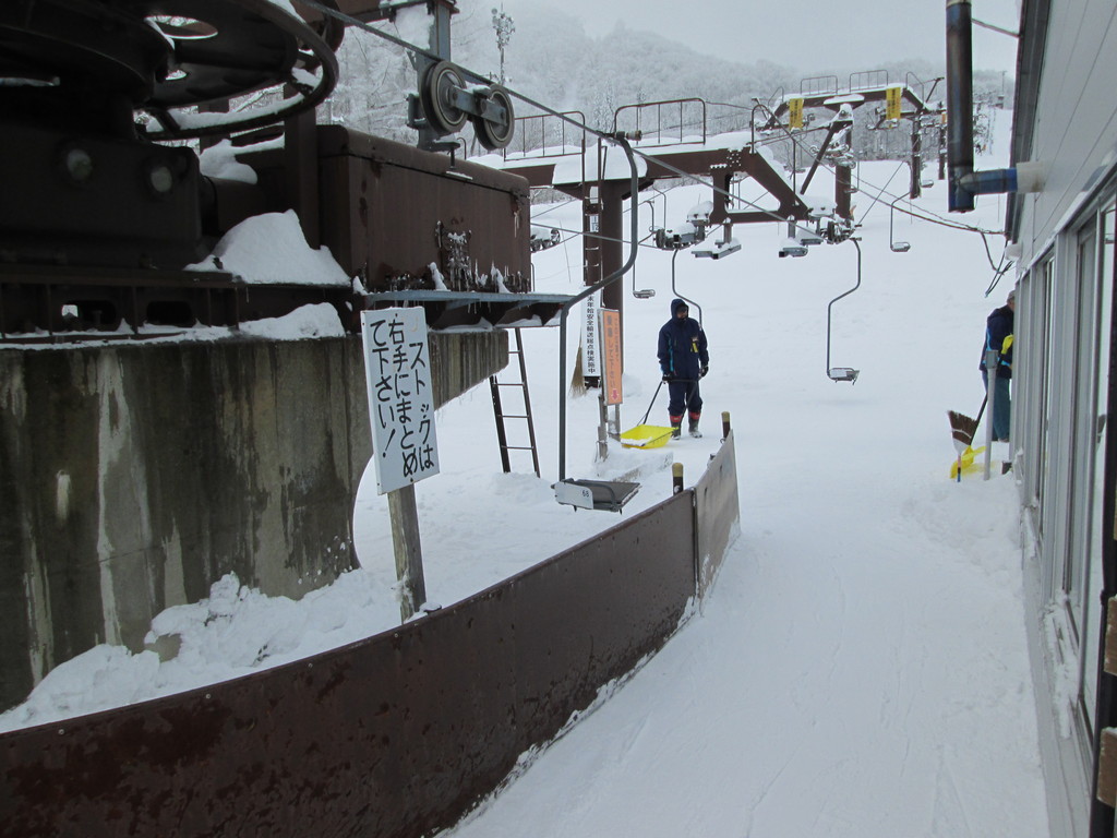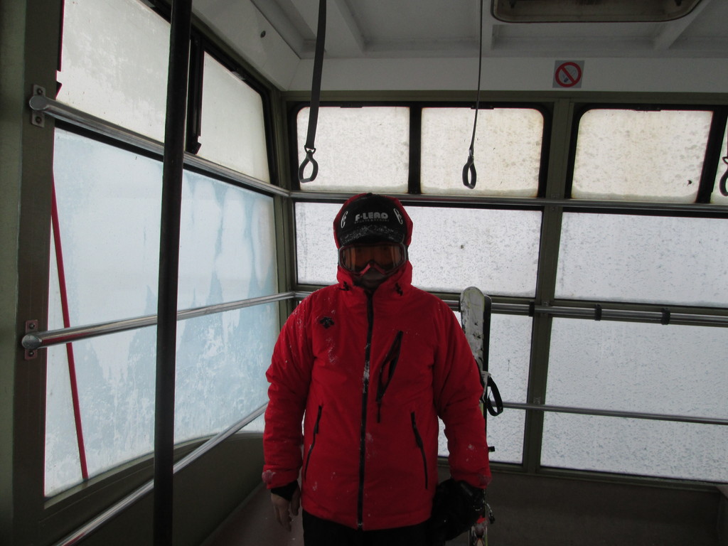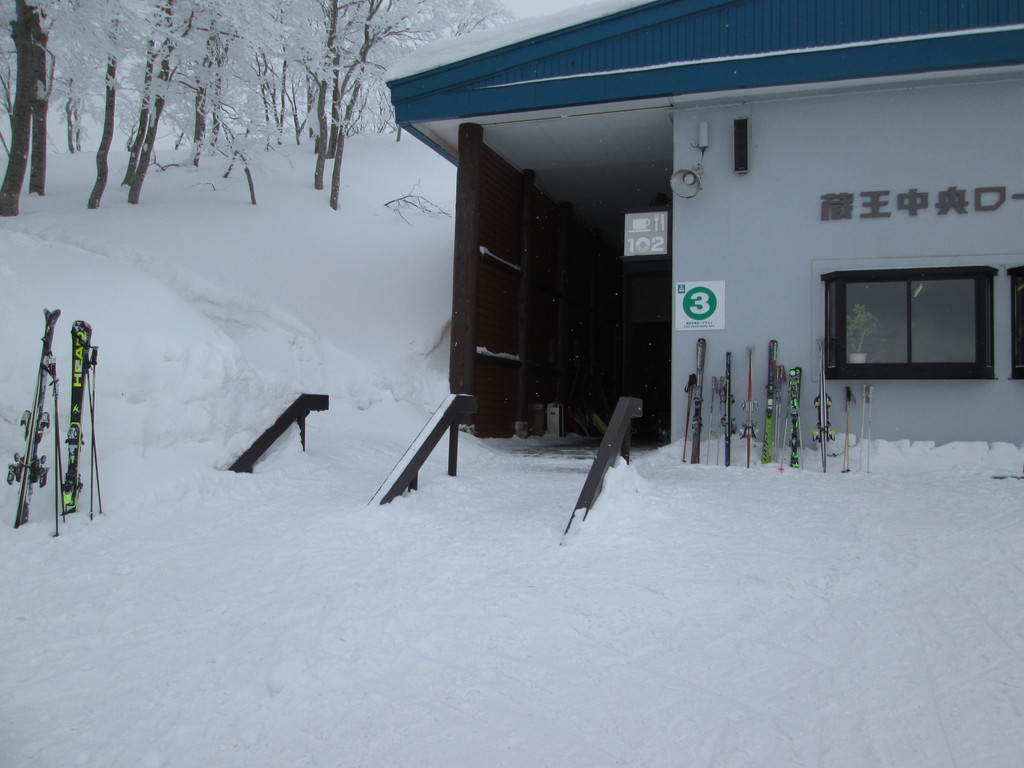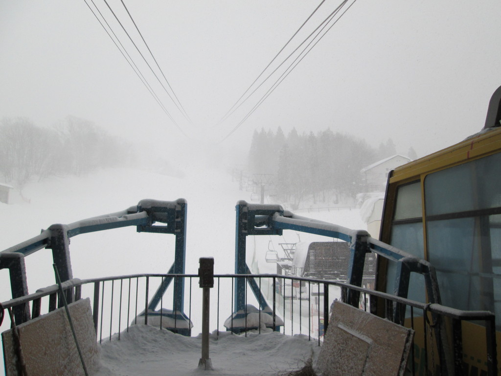 猛吹雪の為山頂線・黒姫・温泉第四・パラダイス・百万人・国体リフトが暴風の為運休でした。たった一人で鳥兜駅に乗車した蔵王河童です。