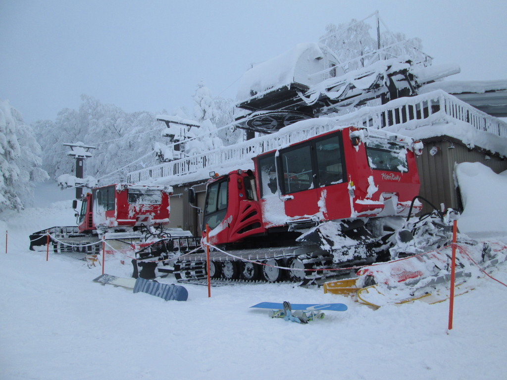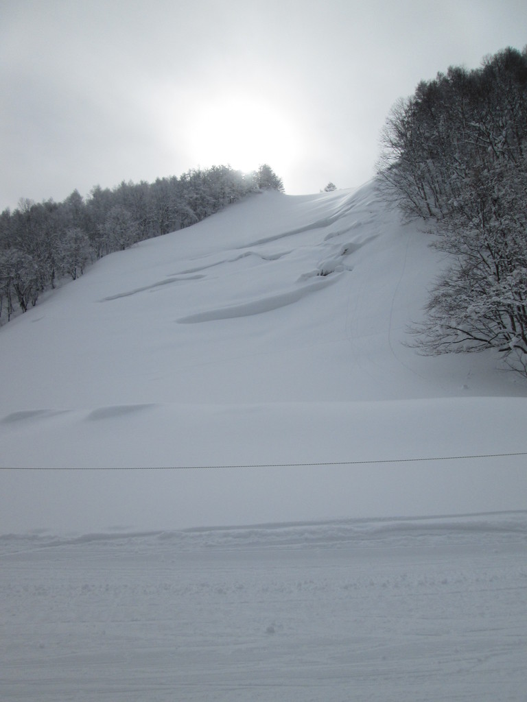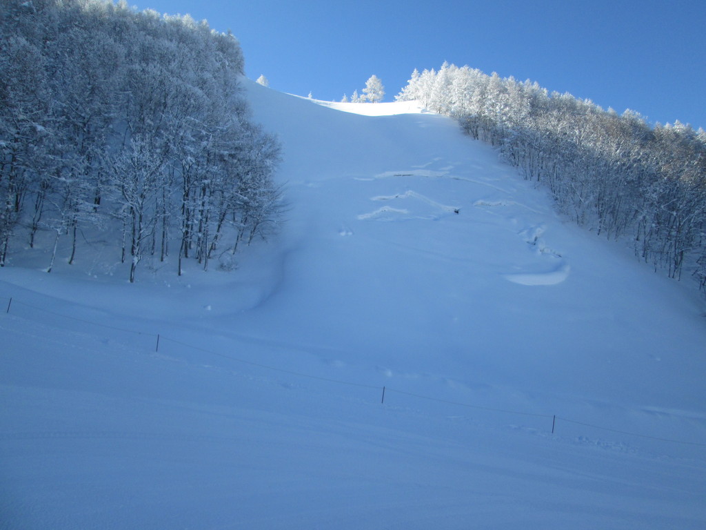 ピステン圧雪雑で思わぬ段差が多く有りますので特にホワイトアウトの標高1,300m以上のバーン気をつけて滑って下さい!!!