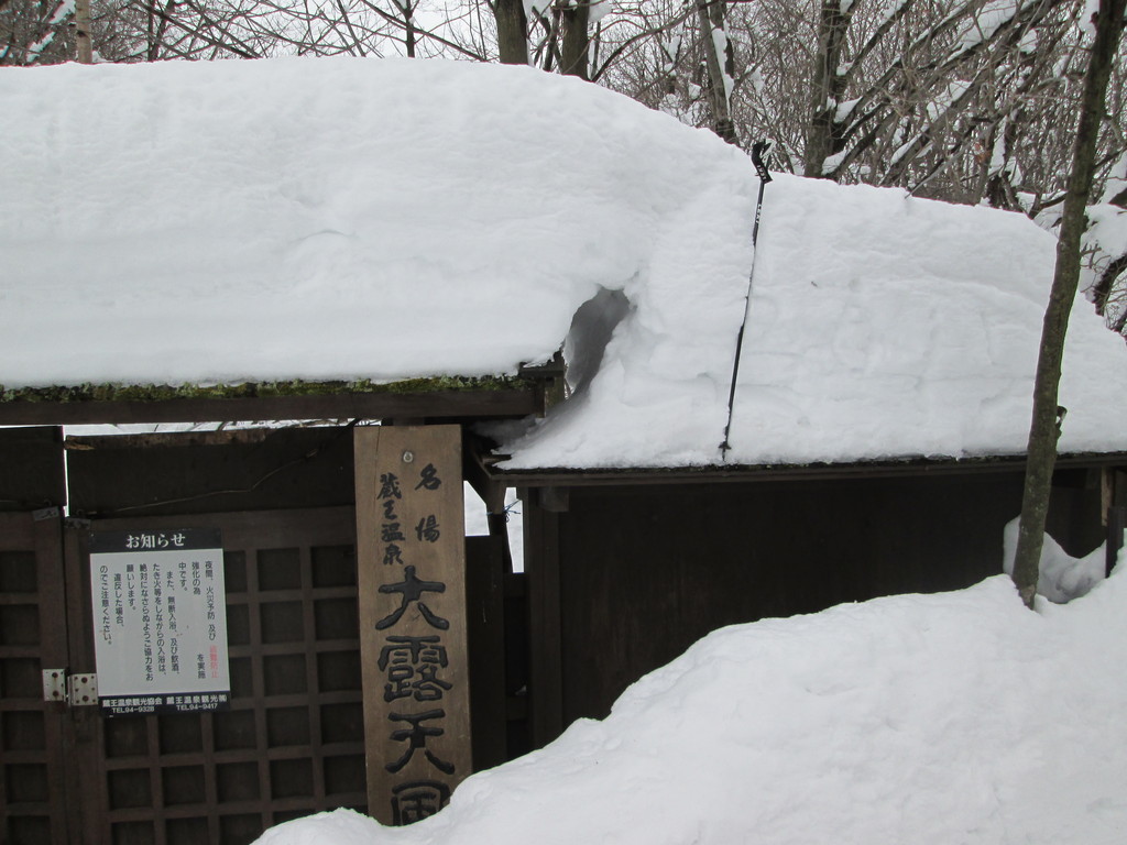 蔵王温泉大露天風呂入口屋根蔵王河童のポール以上の雪が積もりました!!!